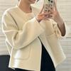 МОДА осень и зима 2025 новое маленькое ароматное шерстяное пальто женское без воротника короткое корейское шерстяное пальто Одежда