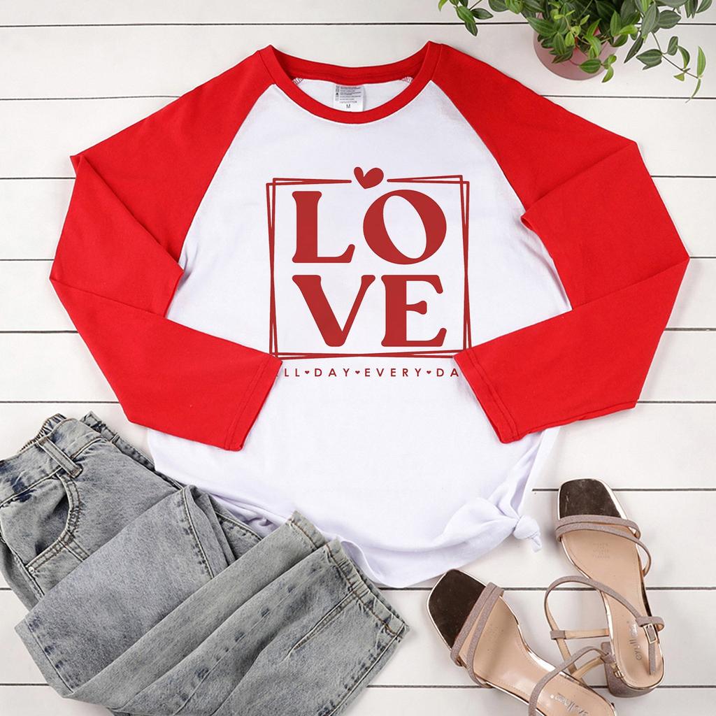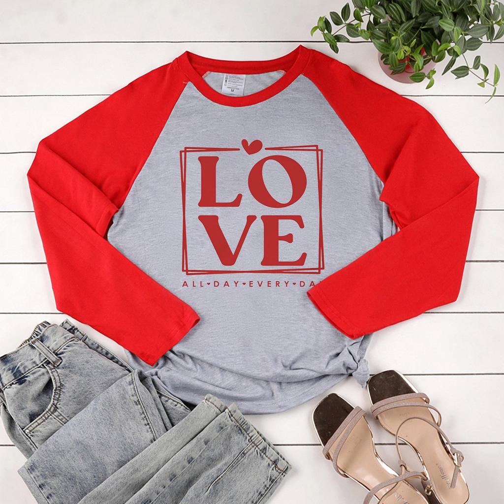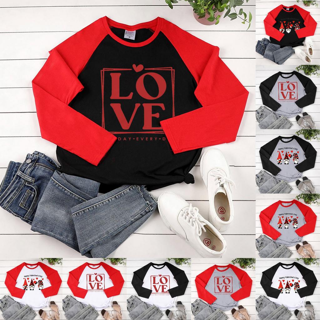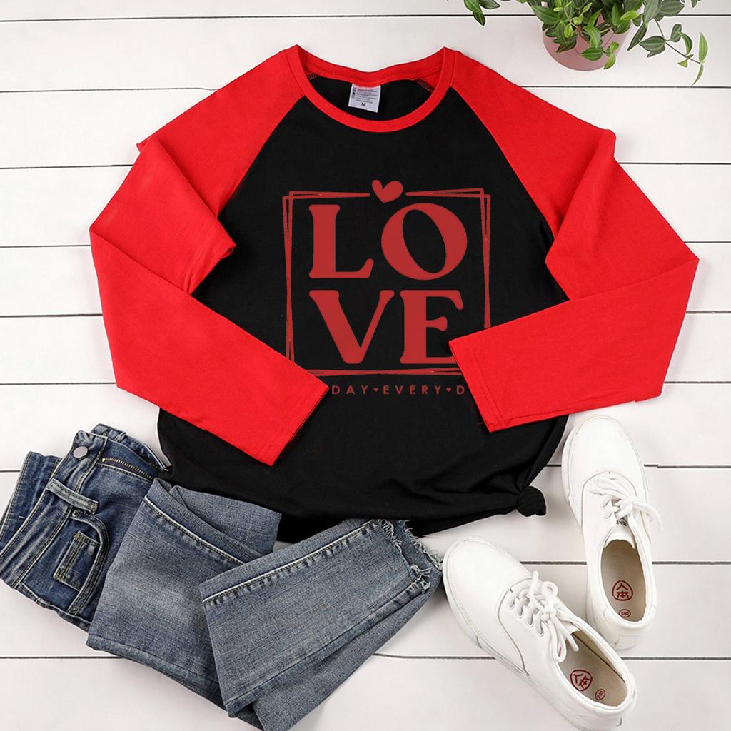 Женская модная повседневная толстовка реглан с длинными рукавами и круглым вырезом с принтом ко Дню святого Валентина