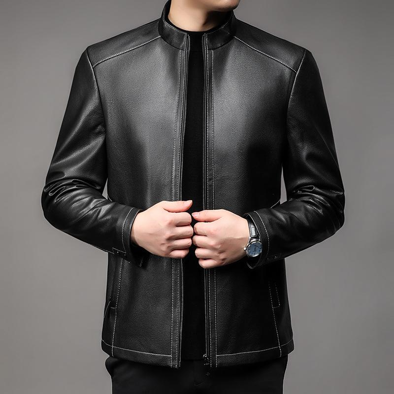 Весенняя и осенняя тонкая куртка из натуральной кожи, мужская тонкая короткая кожаная куртка с воротником-стойкой, мужская куртка из натуральной кожи для людей среднего возраста