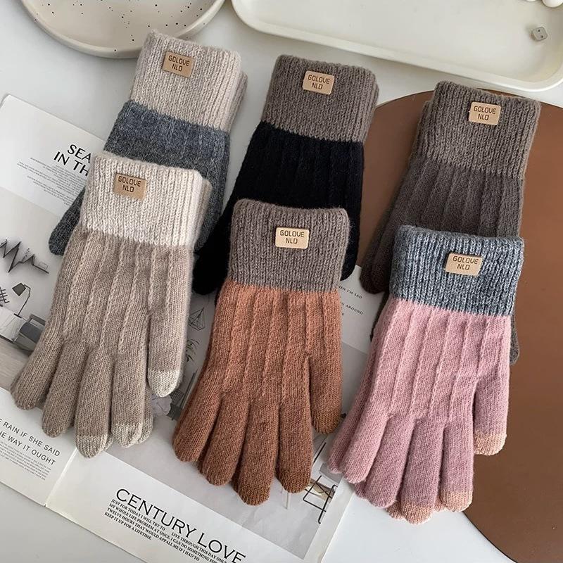 Теплые перчатки для женщин на осень и зиму, вязаные из альпаки, с сенсорным экраном, для улицы, морозостойкие, с утолщением из плюша, корейская версия, милые