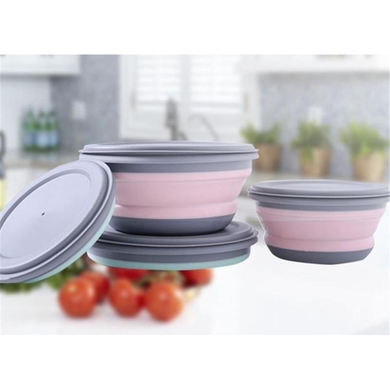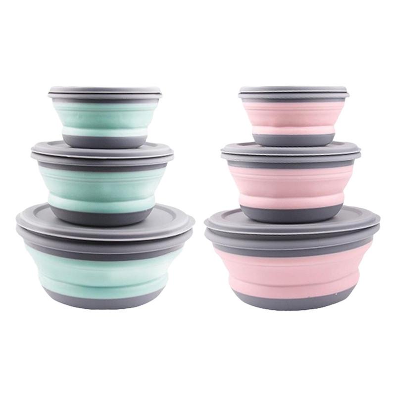 Набор из 3 складных походных мисок, портативные силиконовые кухонные контейнеры для путешествий, кемпинга на открытом воздухе ADM