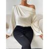 Футболка с длинными рукавами и косым дизайном, женская асимметричная футболка-пуловер, однотонная атласная рубашка с длинными рукавами, женские футболки