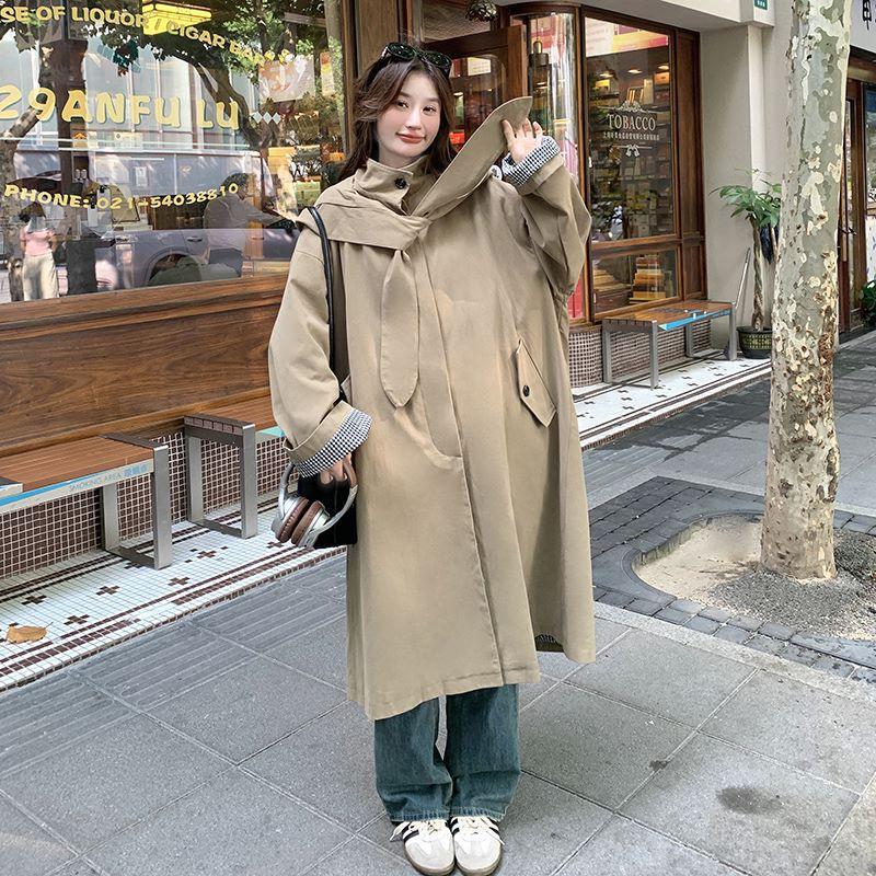 Повседневная ветровка цвета хаки с капюшоном для женщин, осеннее новое свободное пальто средней длины в корейском стиле