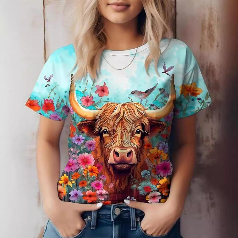Летняя женская рубашка с принтом теленка, с круглым вырезом и короткими рукавами для поездок на работу, футболки женские