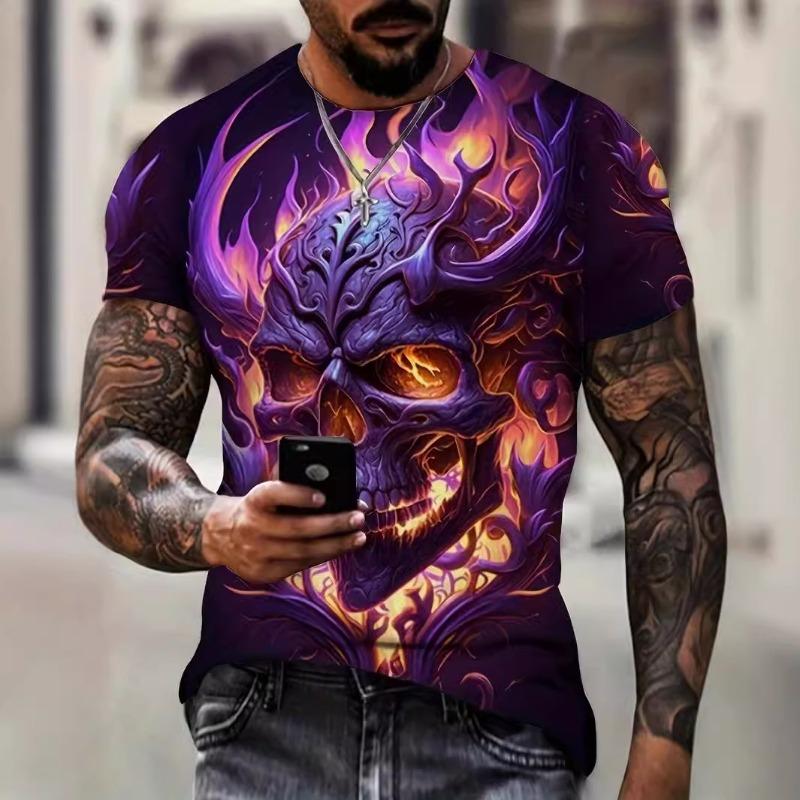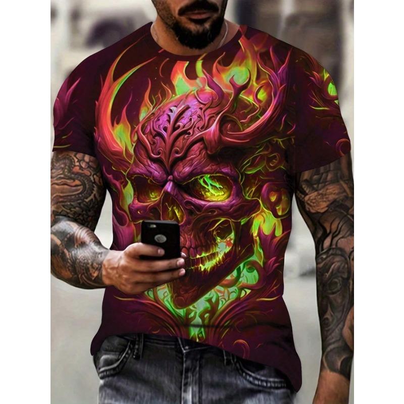 Летняя мода, короткие рукава, мужские повседневные футболки в стиле кэжуал с принтом черепа, мужские