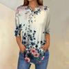Женская мода свободный воротник на пуговицах с принтом рукав 3/43/4 футболка топы пуловер