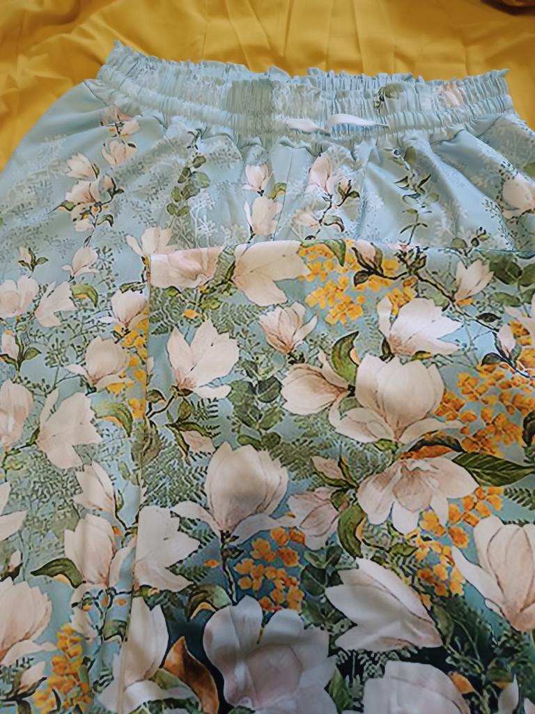 На ОБ 126 подошли, свободно сидят, смотрятся неплохо. Ткань - плотный трикотаж, синтетика, тянется. Но немного расстроило, что рисунок на ткани, если смотреть вблизи, как бы размыт, не четкий, но на удивление издалека и на фото смотрится красиво. Пошит качественно, на рост 165 длинные, ниже пяток, надо подшивать.