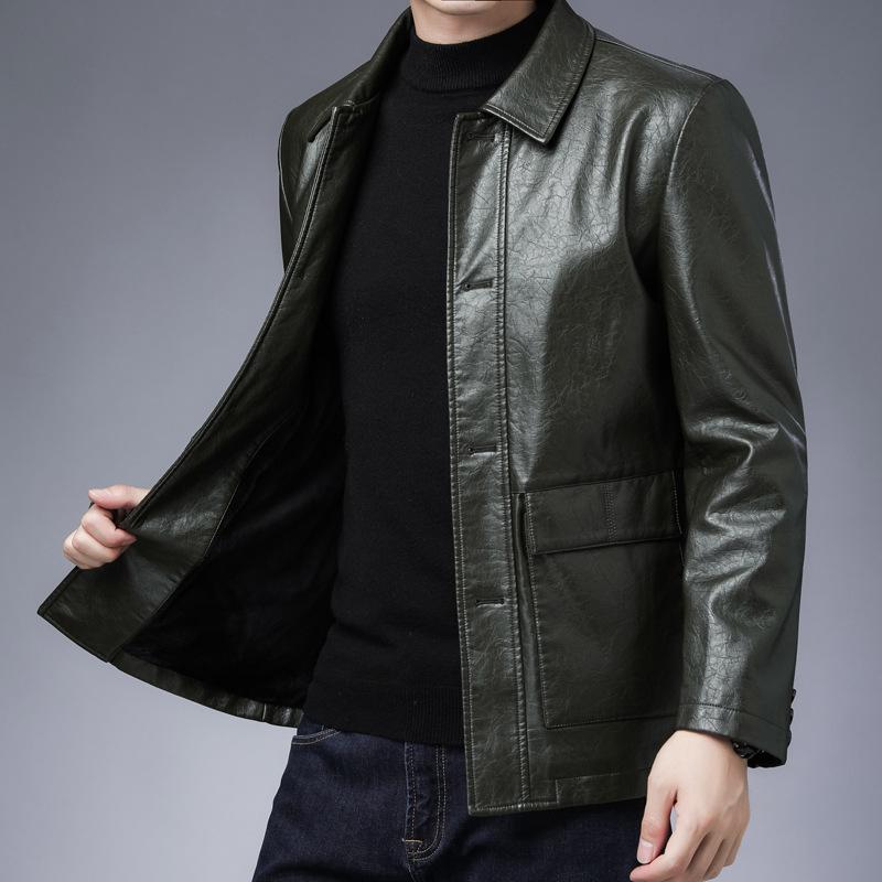 Осенняя новая мужская кожаная куртка, простая и универсальная, из тонкого бархата, однотонная, с лацканами, мужская кожаная куртка для мужчин среднего возраста — купить товар онлайн с бесплатной доставкой по всему миру!