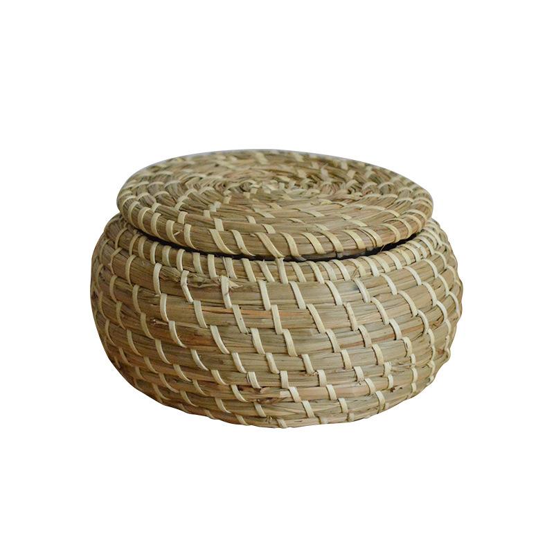 Корзина для хранения из ротанга 7/10/15 см с крышкой, круглый плетеный горшок, органайзер для сухофруктов, орехов, чая, деревенский контейнер для домашней кухни
