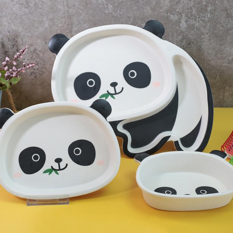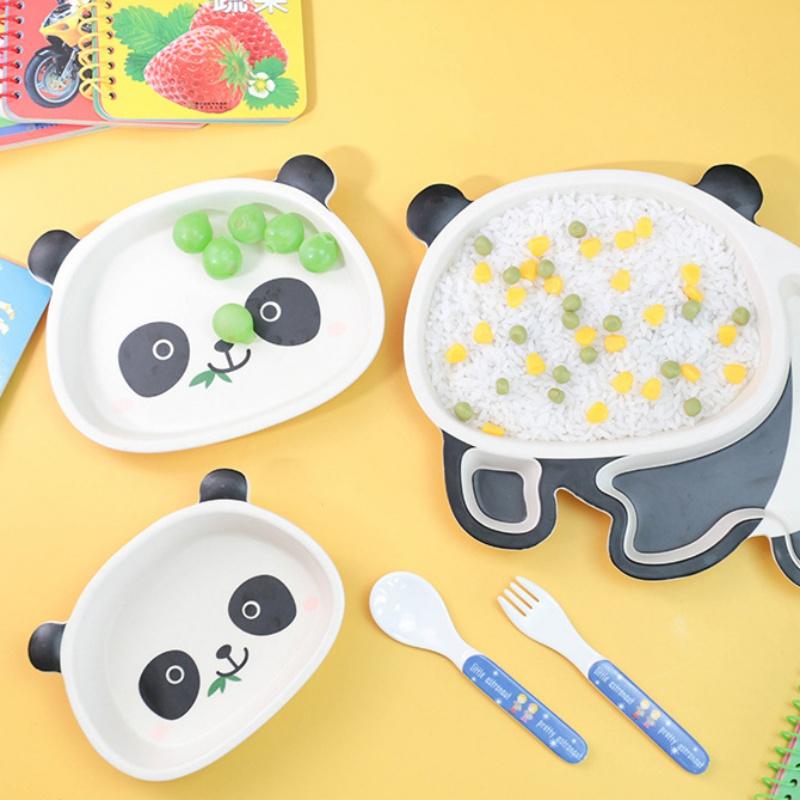 Детская посуда из бамбукового волокна, милая мультяшная панда, тарелка для еды, детская миска, тарелка с отделением для младенцев, ложка, столовая посуда