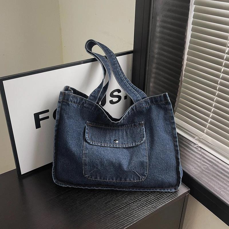 Сумки-тоуты большой емкости из денима, базовый стиль, на молнии для поездок на работу, распродажа, простые однотонные женские сумки через плечо