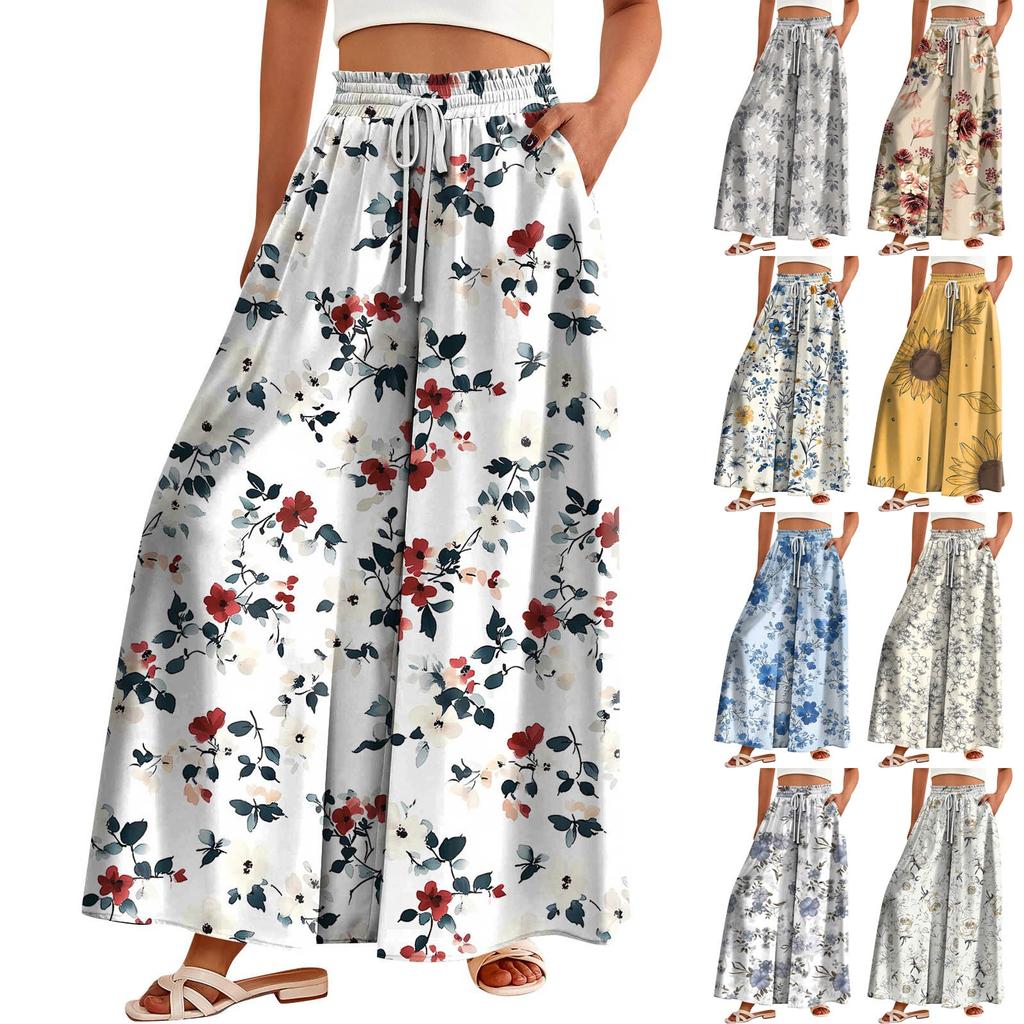 Женские брюки с высокой талией, широкие, повседневные, струящиеся брюки-палаццо, брюки с цветочным принтом и карманом — купить товар онлайн с бесплатной доставкой до всему миру!