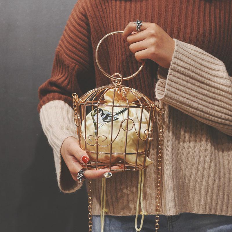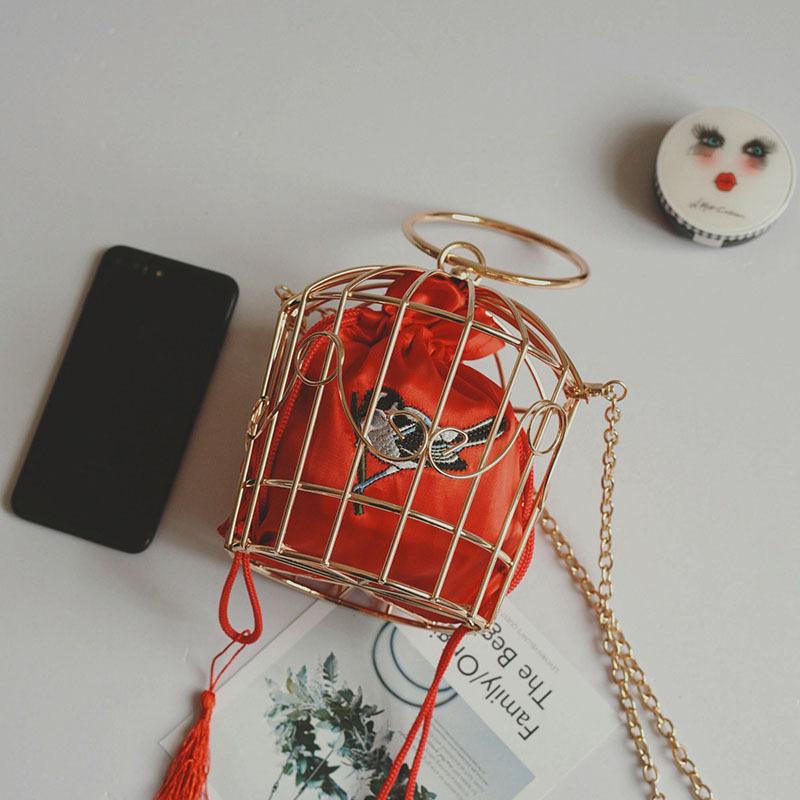 НОВЫЙ дизайн женская вечерняя сумочка Birdcage клатч металлический каркас вышивка ведро Bird Cage мини сумка кошелек женский золотой кисточкой сумочка