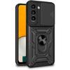 Гибридный бронированный чехол для Samsung Galaxy A34 5G из серии Hybrid Armor Camshield с крышкой камеры черного цветаБронированный чехол из серии Hybrid Armor Camshield изготовлен из термопластичного и прочного материала, по внешнему виду имитирующего сталь.. Чехол подходит для Samsung Galaxy A34 5G и отлично защищает телефон от повреждений, вызванных падениями или царапинами. (например, нося ключи в кармане). В чехле имеется сдвижная крышка для задней камеры.. Благодаря этому стекло камеры защищено от царапин.. Это также дополнительное преимущество для людей, которые ценят конфиденциальность и безопасность своих данных.. Закрытая камера блокирует доступ к видеозаписи, если кто-то получит удаленный доступ к телефону и включит просмотр с основной камеры. Приподнятые края вокруг экрана защищают его от царапин при размещении на плоской поверхности.. Имеет встроенное металлическое кольцо, которое позволяет удобно пользоваться телефоном одной рукой, а также служит подставкой.. Встроенная металлическая пластина позволяет прикрепить его к магнитным автомобильным креплениям.. Он имеет отзывчивые кнопки и вырезы для портов.. Идеально подходит для людей, которые ценят стиль, качество и хотят заботиться о своем устройстве. Спецификация:Ряд:Материал гибридной брони Camshield: ТПУ, совместимость с ПК: Samsung Galaxy A34 5G Цветной: черныйОсновные характеристики гибридного защитного чехла Camshield для Samsung Galaxy A34 5G:Защищает от царапин. Конструкция корпуса изготовлена из двух прочных материалов.: ТПУ и ПКУстойчив к падениям благодаря расположению подушек безопасности по углам. Крышка камеры защищает объектив телефона и вашу конфиденциальность.. Вы можете закрыть камеру в любое время. Идеально подходит по форме Samsung Galaxy A34 5G.. Не блокирует доступ к кнопкам, динамикам и порту зарядки. Еще большее удобство использования.. Встроенное металлическое кольцо, вращающееся на 360 градусов, обеспечивает надежный захват и комфортный просмотр фильмов или серфинг в Интернете. Продуманный дизайн. Чехол состоит из гибкой рамы, жесткой задней части и крышки камеры.. Усиленные углы поглощают энергию удара, которая равномерно распределяется по поверхности корпуса. Защита задней камеры На задней стороне корпуса расположена сдвижная крышка камеры.. Защищает стекло камеры от царапин при повседневном использовании.. Когда вам нужно записать видео или сделать фотографию, просто сдвиньте крышку, чтобы открыть объектив. Комплексная защита. Уникальный дизайн означает, что аксессуар защищает весь корпус смартфона.. Ваше устройство будет заключено в защитную броню, которая защитит его от всех опасностей. Легкая и безопасная установка. Благодаря своей конструкции аксессуар легко снимать и надевать.. И без риска поцарапать корпус. Даже спустя годы использования оборудование будет выглядеть как новое! Более того, вам не придется беспокоиться, что чехол случайно соскользнет с устройства. Приподнятые края корпуса дополнительно обеспечивают сохранность экрана и объектива камеры.. Независимо от того, как вы положите телефон, вы можете быть уверены, что упомянутые элементы не будут поцарапаны. Точные вырезы. Несмотря на комплексную защиту, чехол по-прежнему гарантирует свободный доступ ко всем необходимым портам, датчикам и динамикам.. Комфорт использования оборудования ничем не ограничен.. К нему легко можно подк