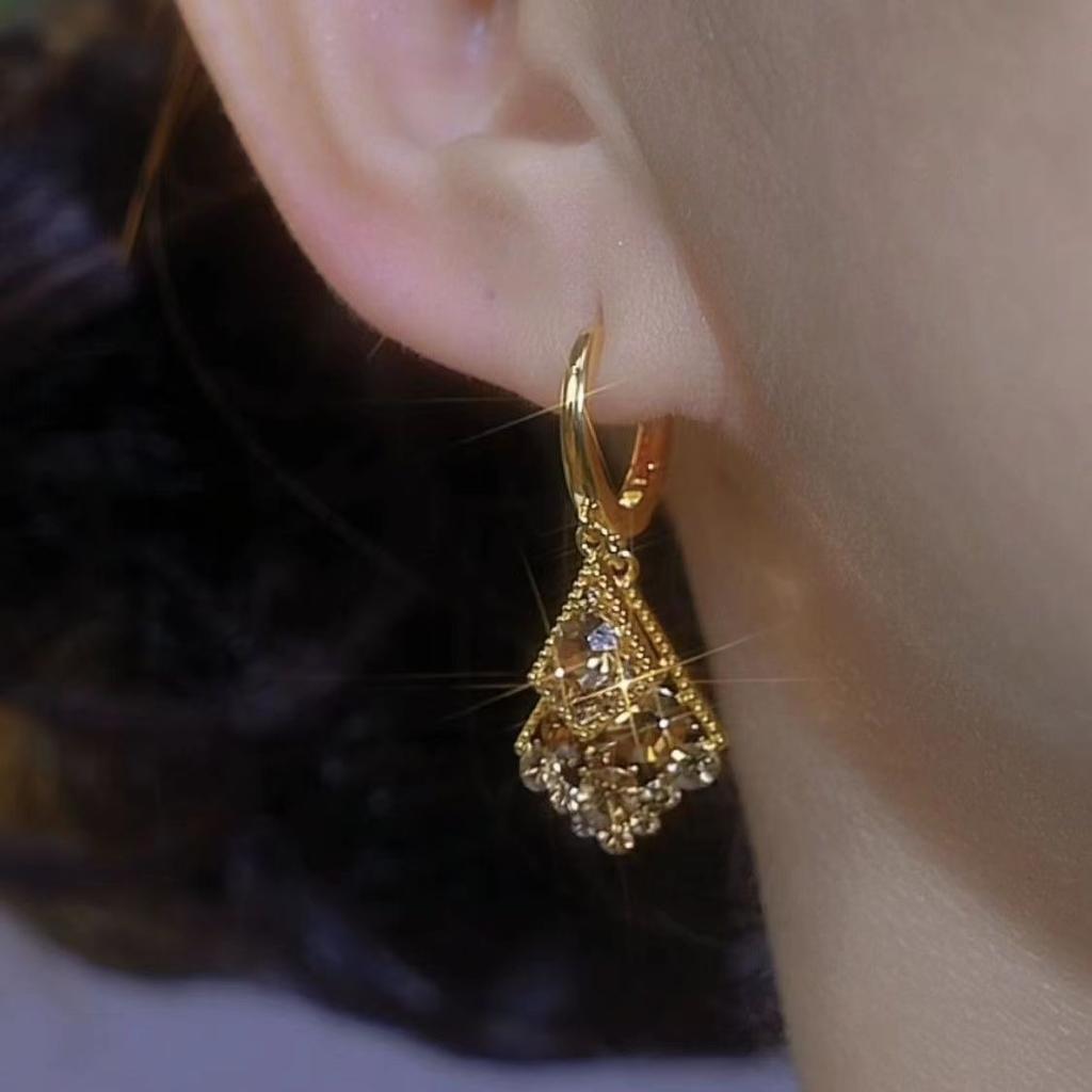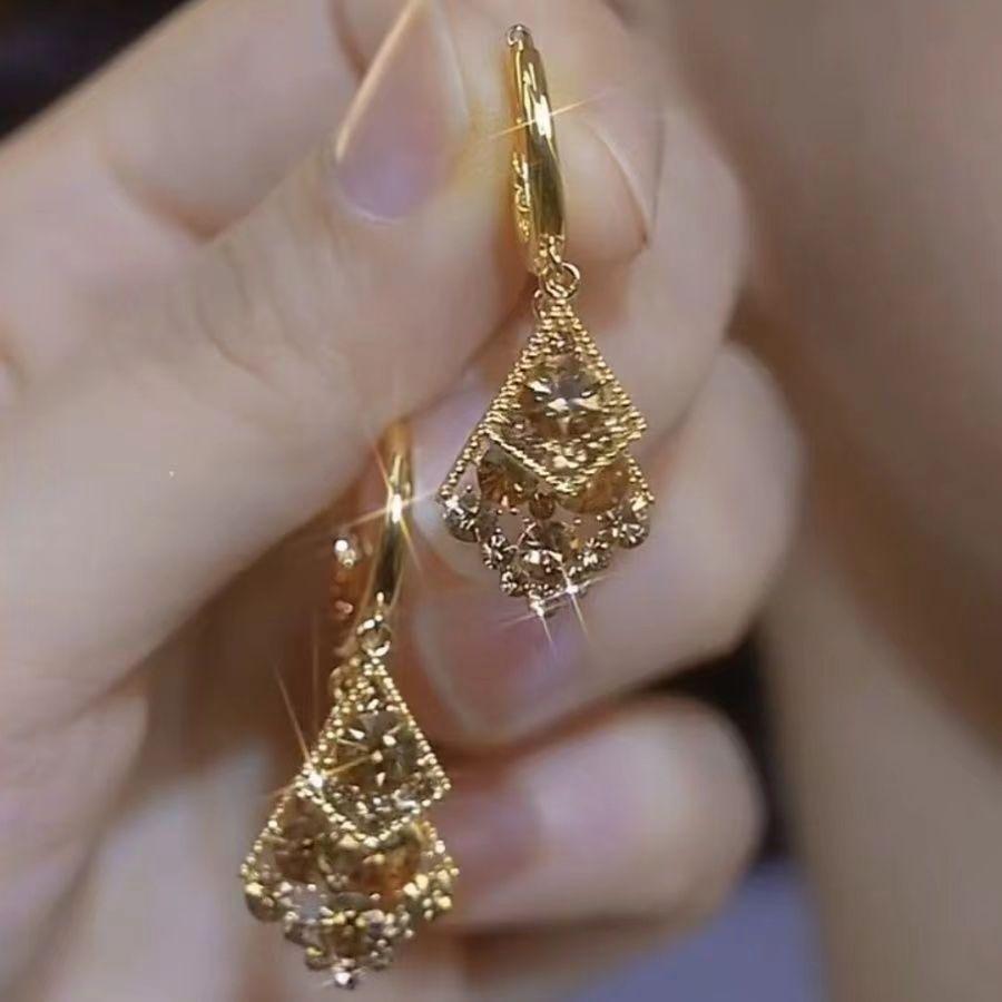 Серьги Niche Design Coffee Color Diamond-Cream Double-Layer Rhombus, легкие роскошные серьги высокого класса, серьги Flash Diamond Temperament