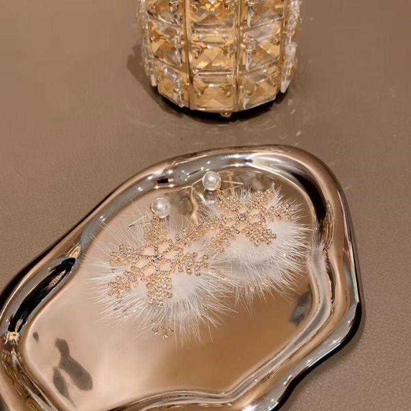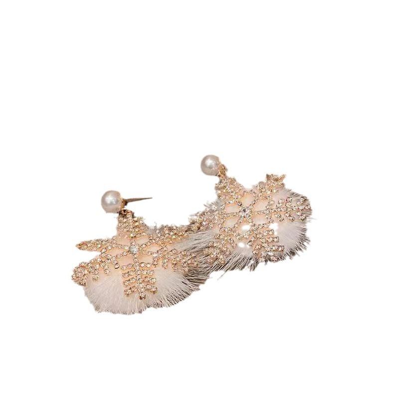 Рождественские серьги-снежинки с бриллиантами, плюшевые серьги Niche Design Sense Premium Earrings Autumn And Winter Ear Flower