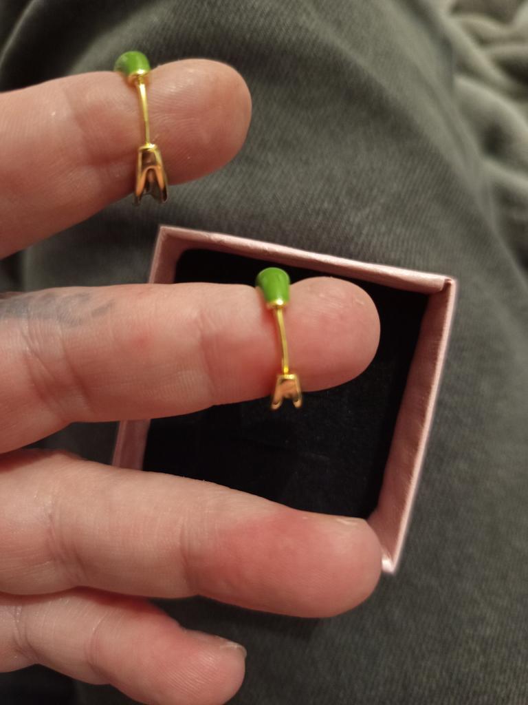 Серьги неплохие, но зелёный цвет не того оттенка, как на фото. Заказала их именно из-за цвета, но теперь они не подходят к кольцу 😐