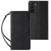 Samsung Galaxy S23 Ultra Magnetic Wallet Flip Case with Lanyard and Stand - Black