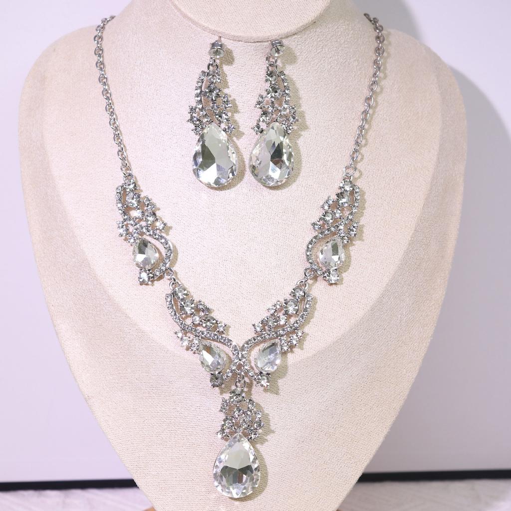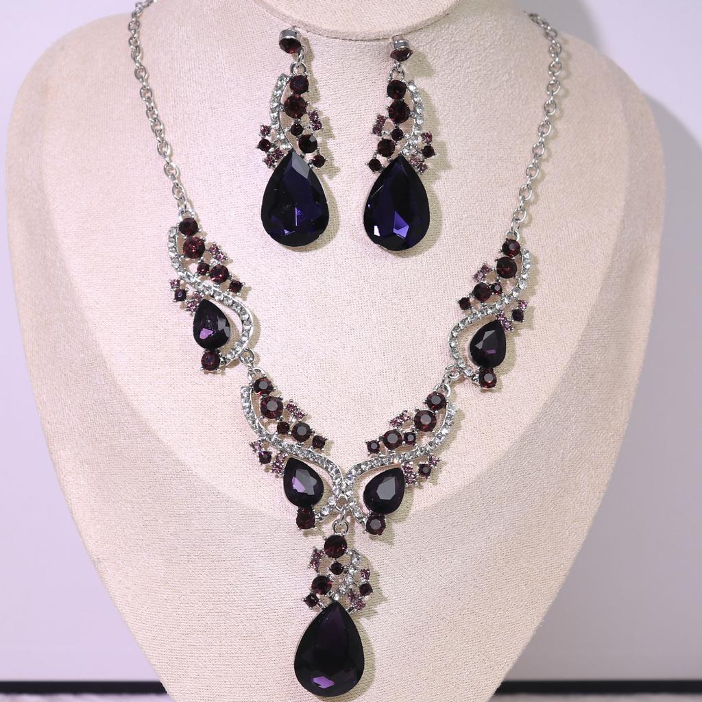 Комплект из ожерелья и серег, комплект из 2 предметов из сплава Court Temperament с кристаллами в стиле ретро