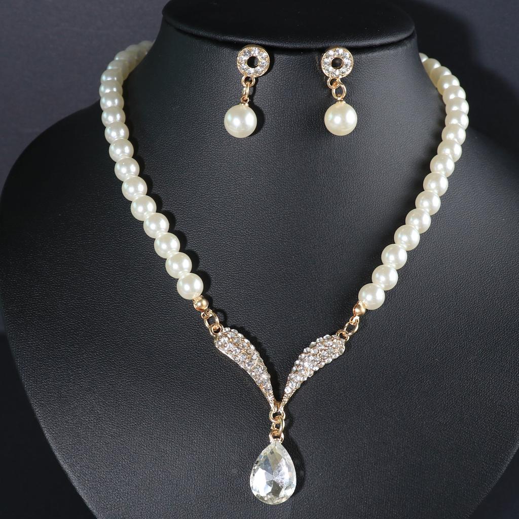 Комплект ювелирных изделий из жемчуга, серьги, свадебные аксессуары, ожерелье со стразами, модный широкий комплект из 2 предметов, сплав