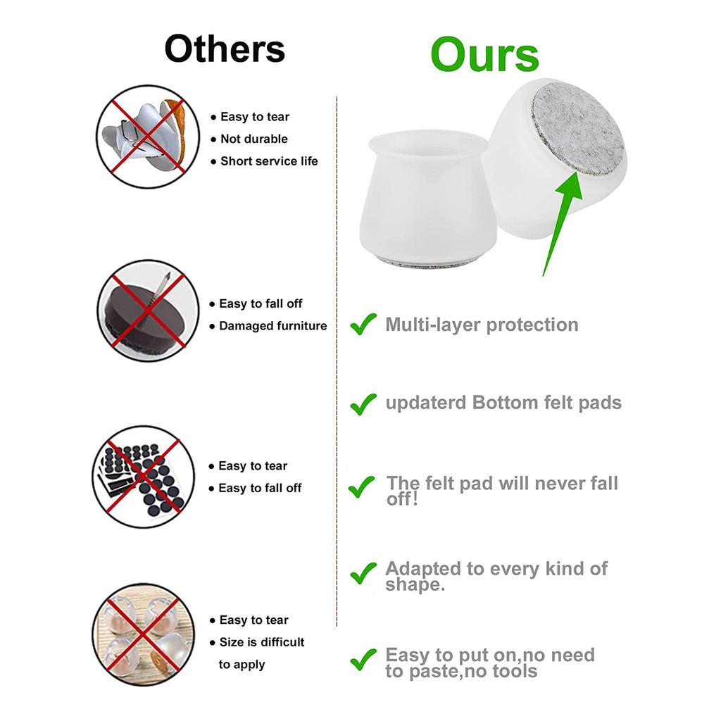 --Нет необходимости в клее и его гибком силиконовом качестве, которое позволяет вам сжимать или может смешивать его в пределах диапазона, чтобы соответствовать ножке стула / стола.