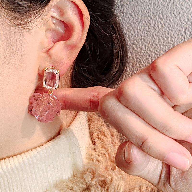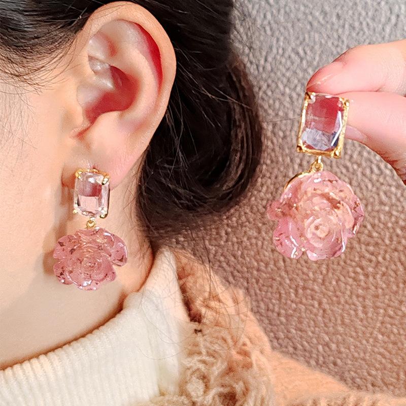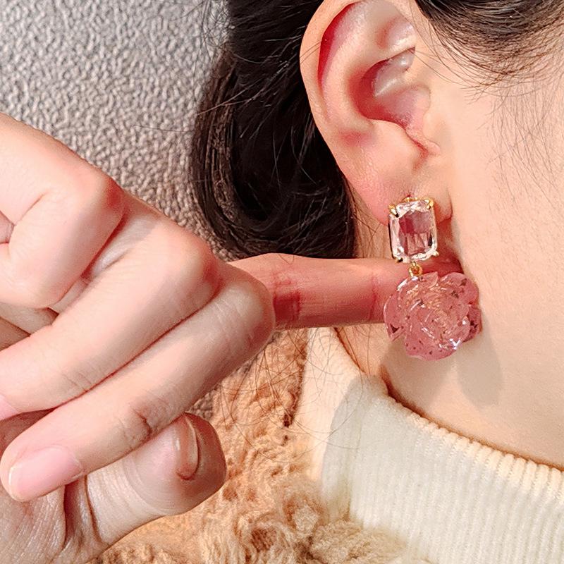 Корейские элегантные темпераментные серьги с кристаллами в виде цветка женские легкие роскошные серьги нишевого дизайна высокого класса