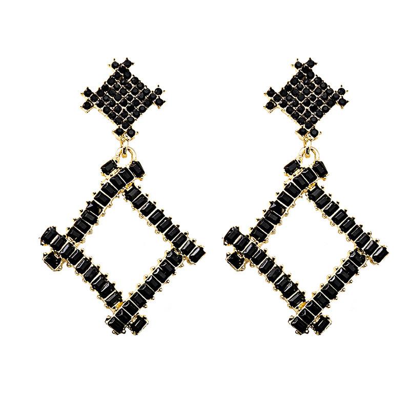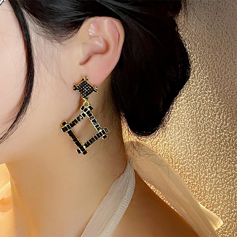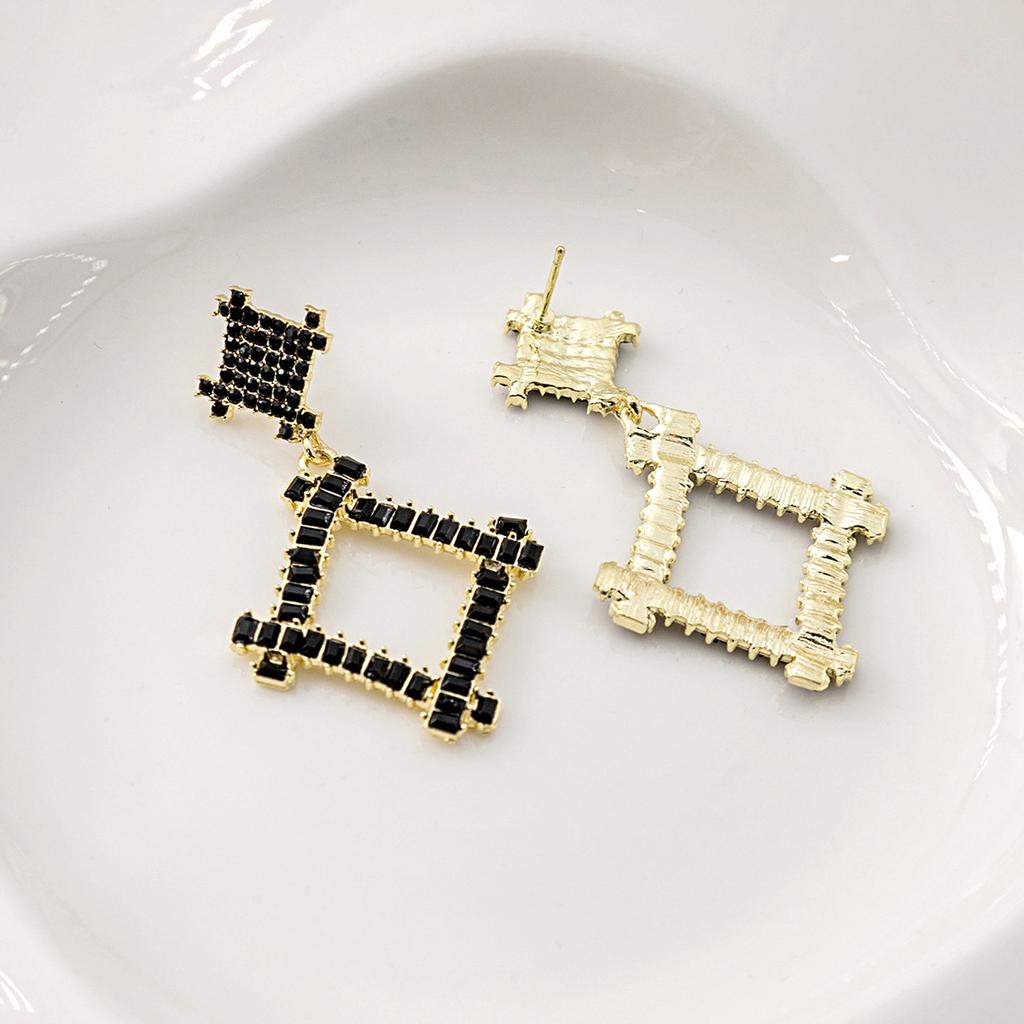 Геометрические серьги с черными бриллиантами, ретро-серьги с квадратными полыми бриллиантами, роскошные серьги нерегулярной огранки Niche Light Tide