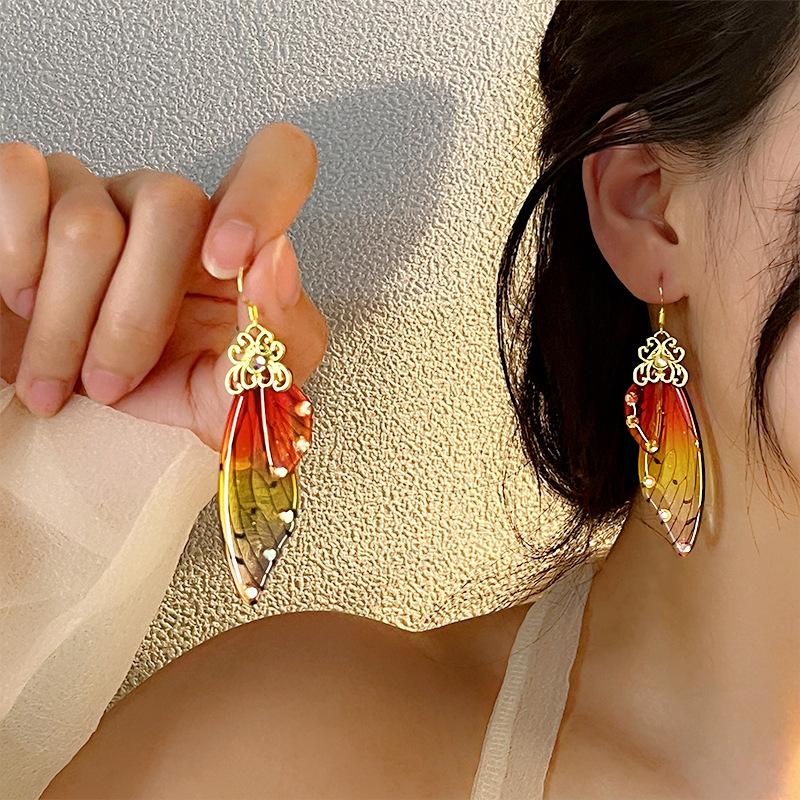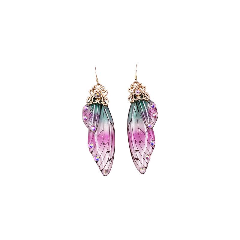 Серьги в форме крыльев бабочки, золотые серьги, темперамент, асимметрия ниши, фиолетовые серьги-гвоздики, ветер, продвинутое чувство, чувство дизайна серег