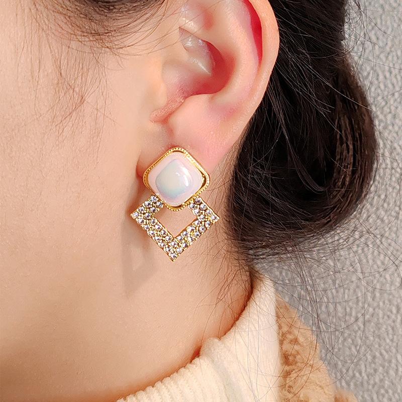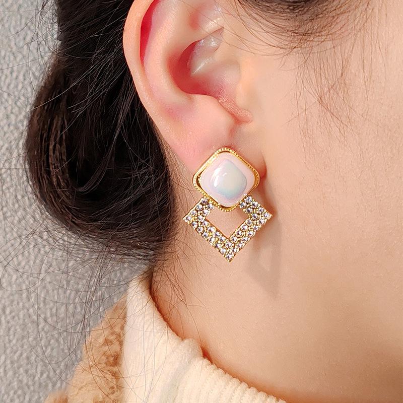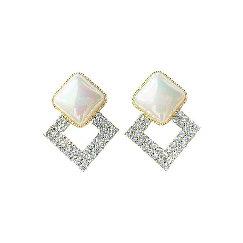 Серьги с кристаллами в виде двойного ромба. Модные универсальные серьги-гвоздики с жемчугом. Легкие роскошные серьги высшего качества.