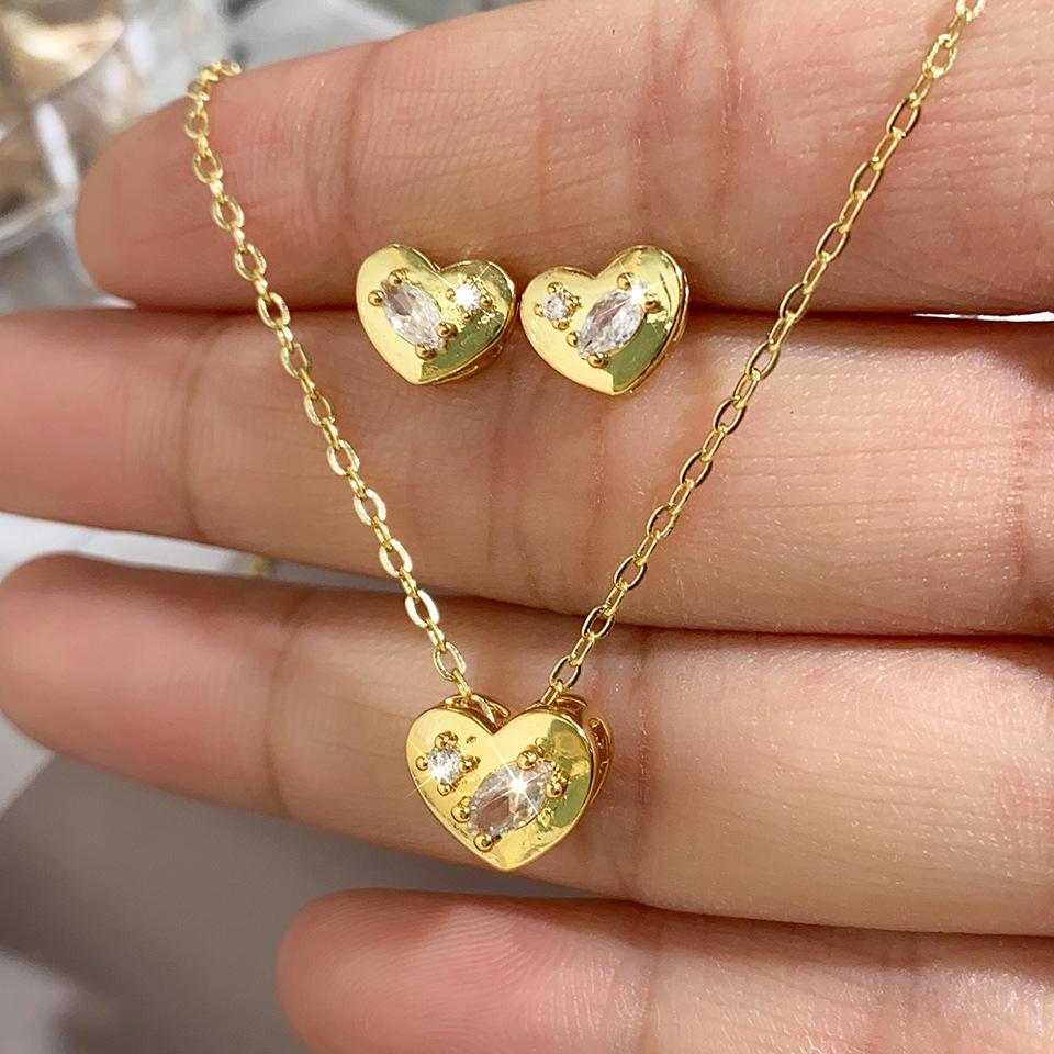 Комплект из двух ожерелий и серег, полностью покрытых цирконами и покрытых 18-каратным золотом. Женский костюм Love, Westeria.