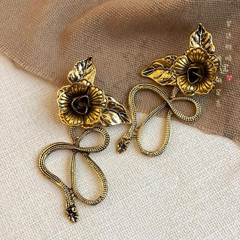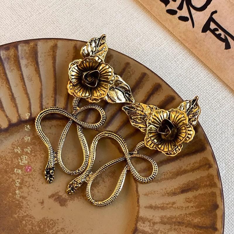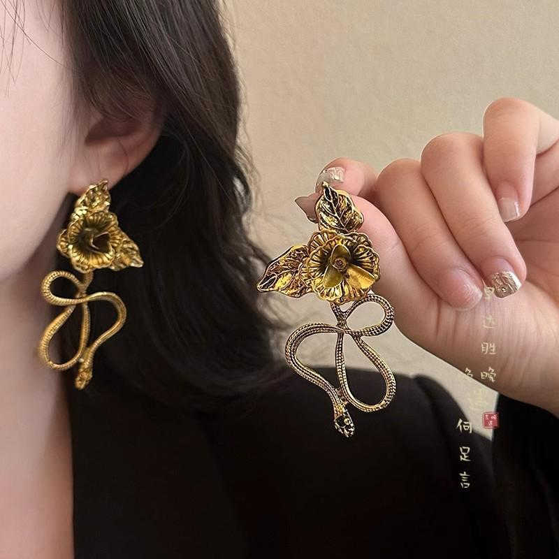 Серьги в виде золотых цветов с трехмерным дизайном, женские преувеличенные персонализированные серьги-гвоздики, женские серьги-гвоздики в стиле ретро Cold Wind High-End