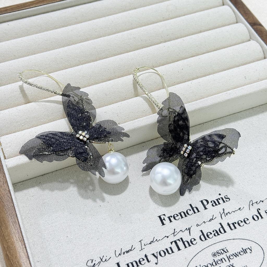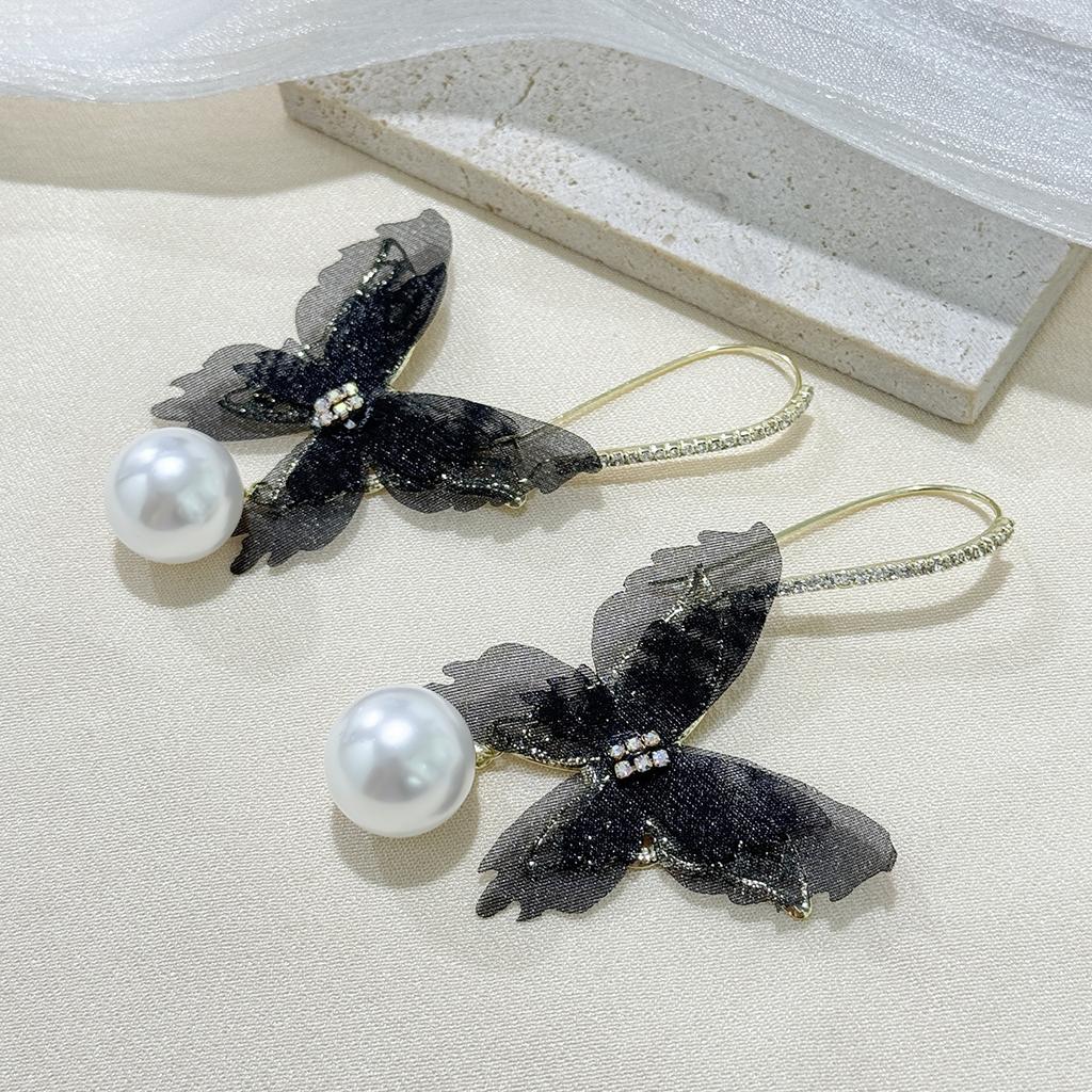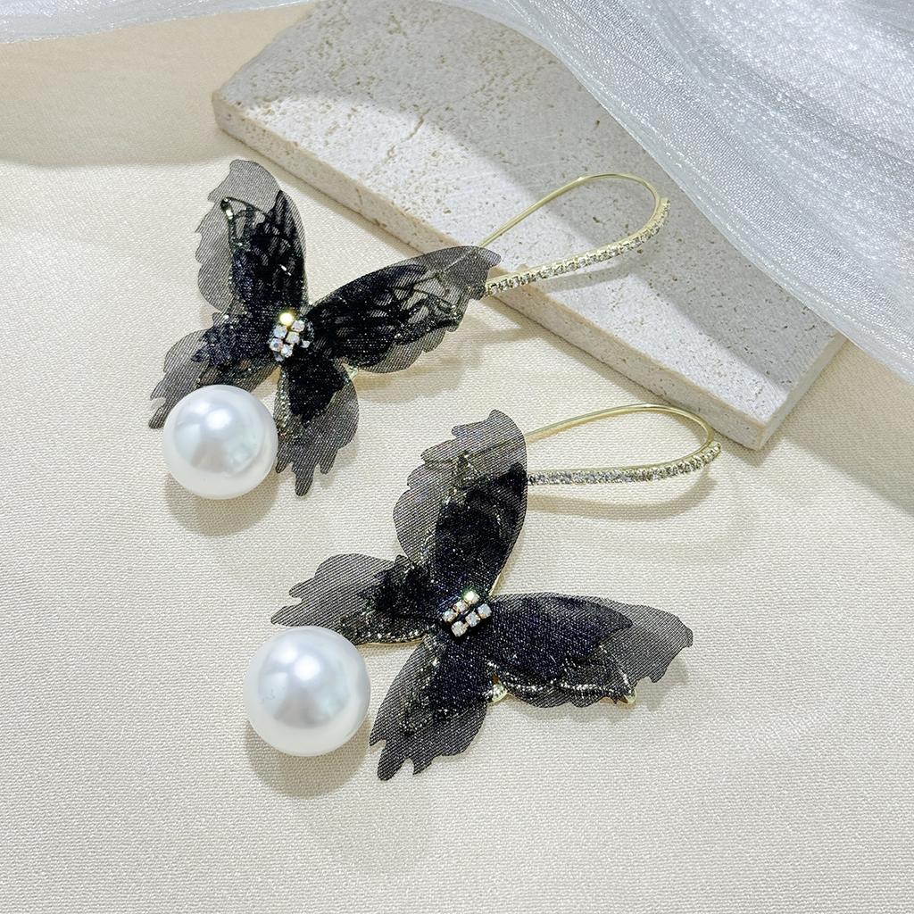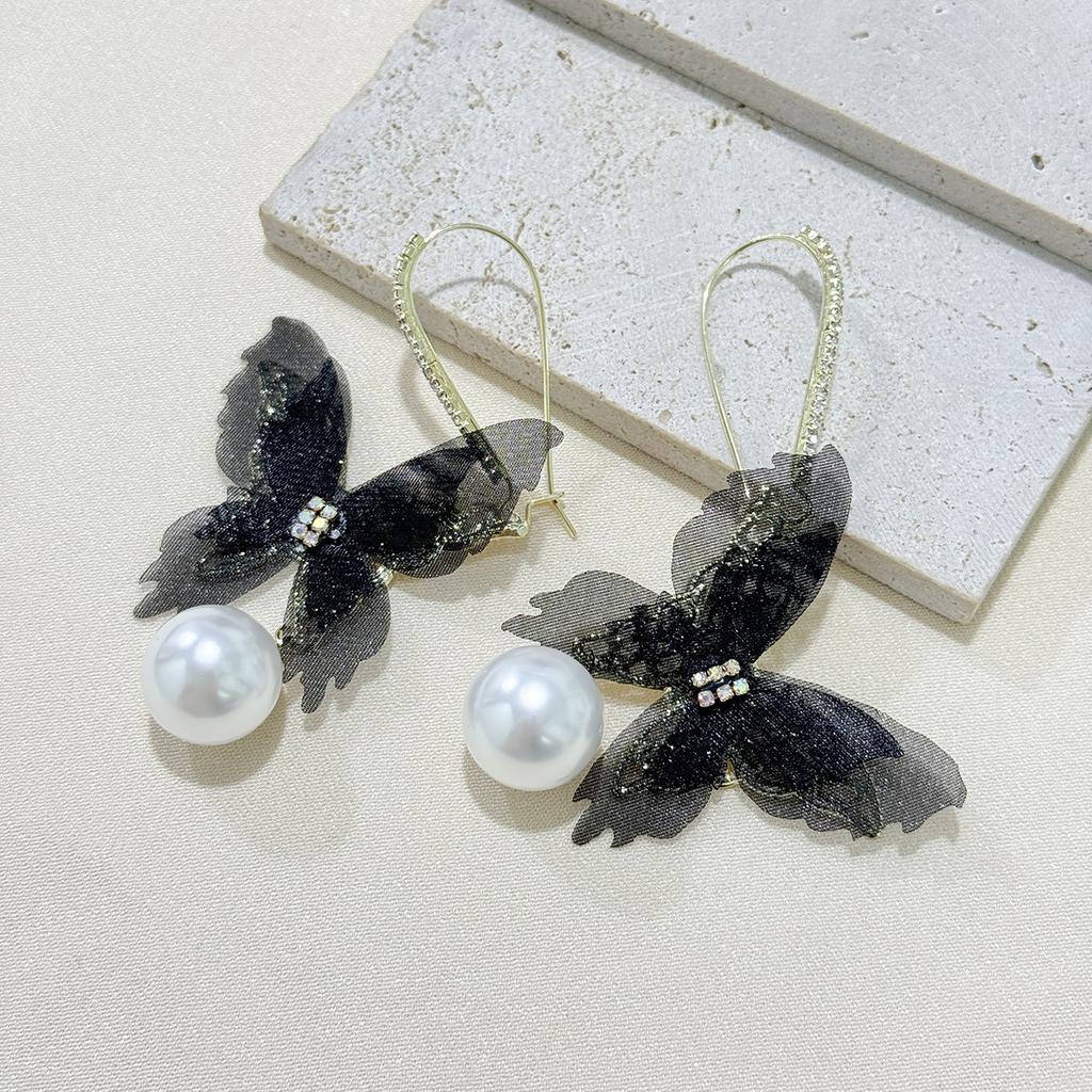 Серьги-подвески с жемчугом и сеткой-бабочкой премиум-класса, легкие роскошные серьги-крючки для ушей для женщин