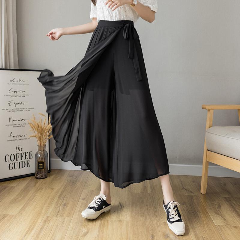 Весна и лето 2024 года, новые корейские брюки из шифона со складками, большие размеры, повседневные брюки, юбка с эластичной резинкой на талии