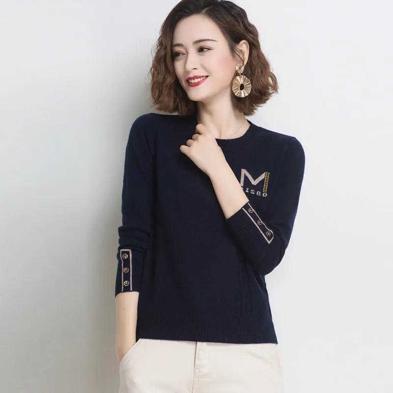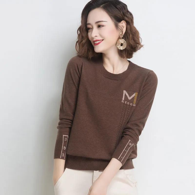 Женские хлопковые вышитые футболки с длинными рукавами, женская одежда для мам на весну и осень, свободная блузка с круглым воротником, топ 4XL