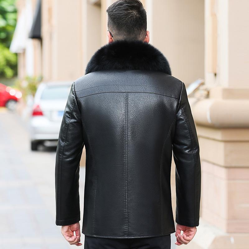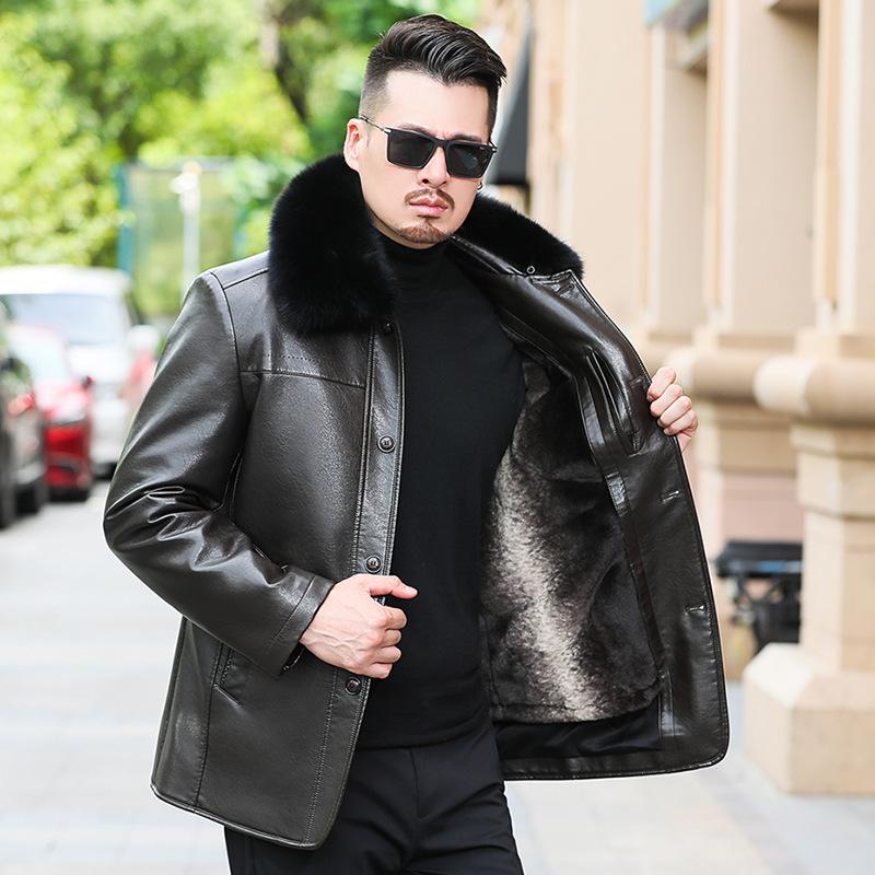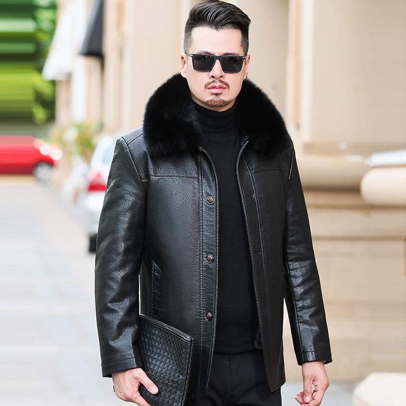 Зимняя куртка из натуральной кожи со съемной утолщенной бархатной подкладкой для папы среднего возраста, мужская куртка с воротником из овчины на пуговицах