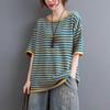 Футболки в полоску из хлопка, женские повседневные свободные топы с коротким рукавом, летние трендовые тонкие футболки большого размера, футболка в корейском стиле, топ Y2k