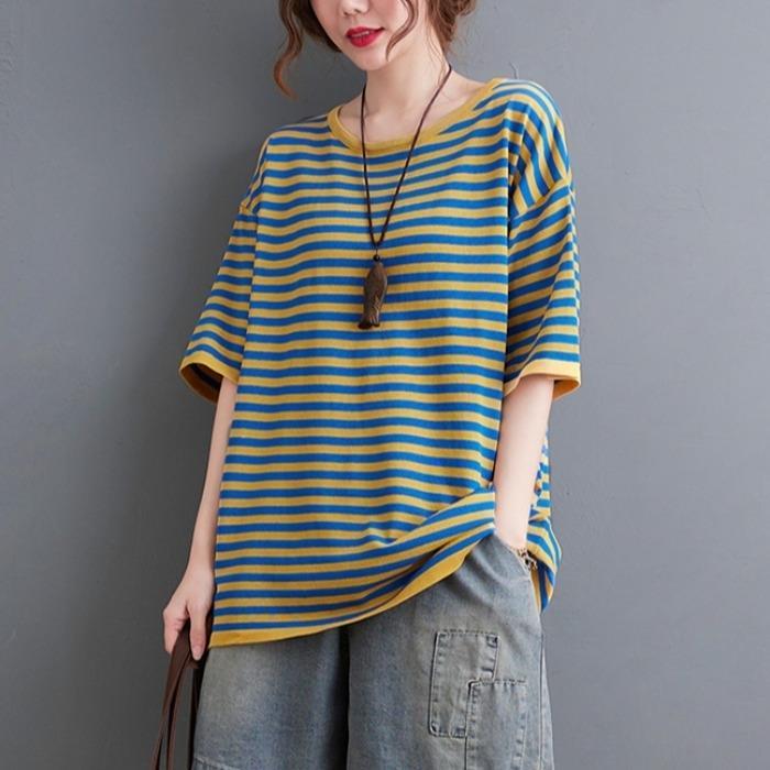 Футболки в полоску из хлопка, женские повседневные свободные топы с коротким рукавом, летние трендовые тонкие футболки большого размера, футболка в корейском стиле, топ Y2k — купить товар онлайн с бесплатной доставкой до всему миру!