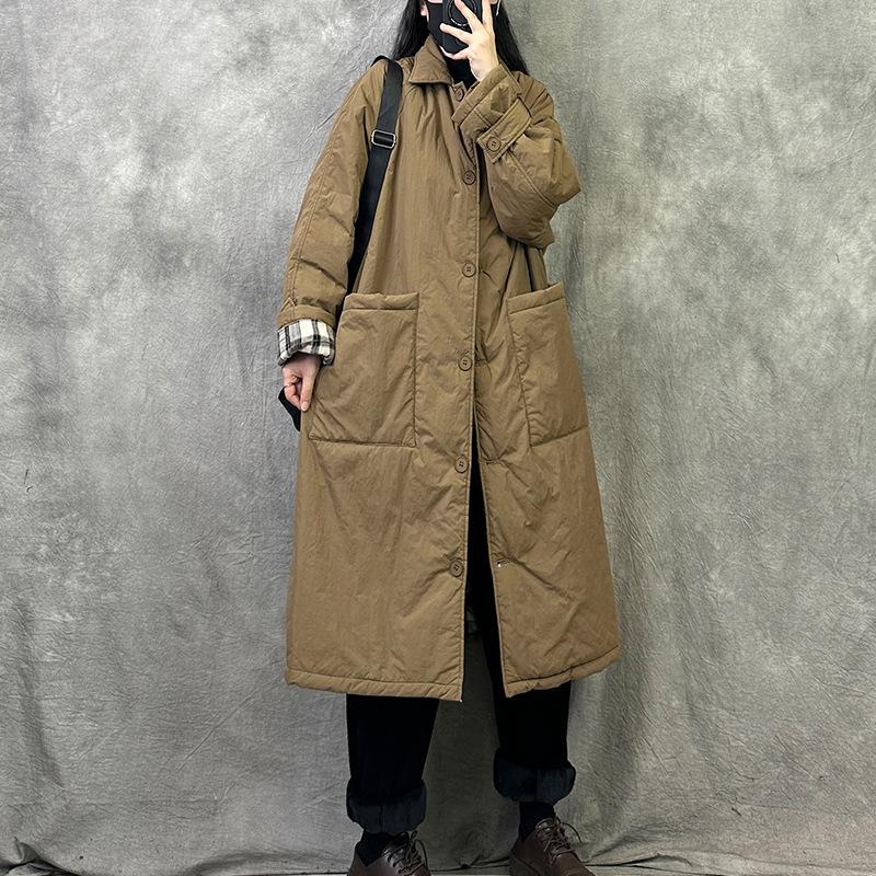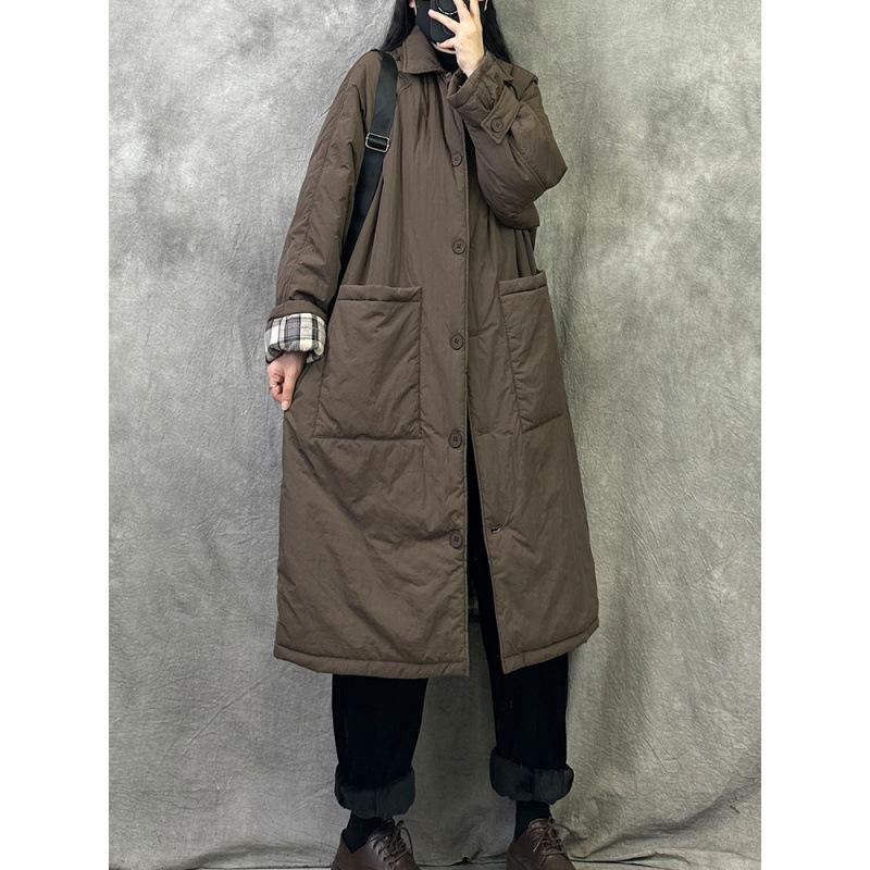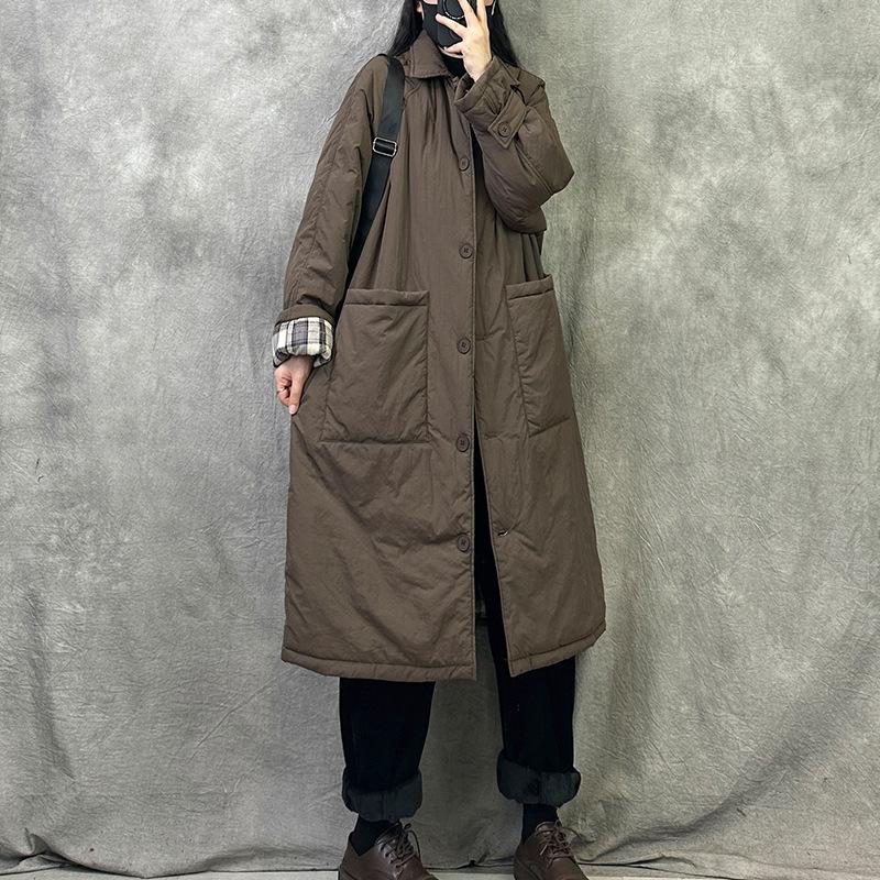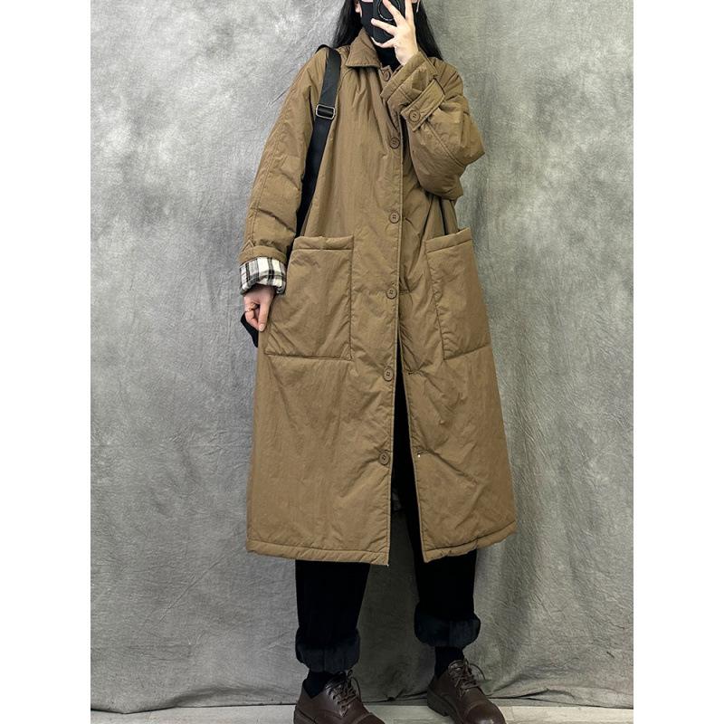 Оригинальная утолщенная куртка-тренчкот средней и длинной длины из хлопка для женщин 2024 года, новая зимняя свободная куртка большого размера в иностранном стиле