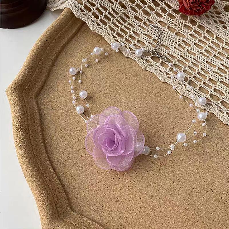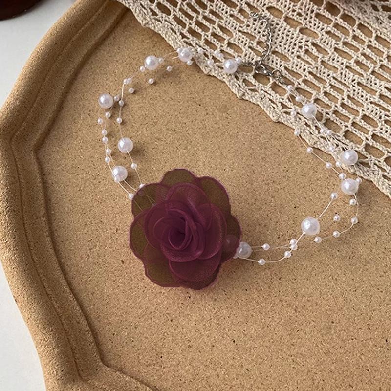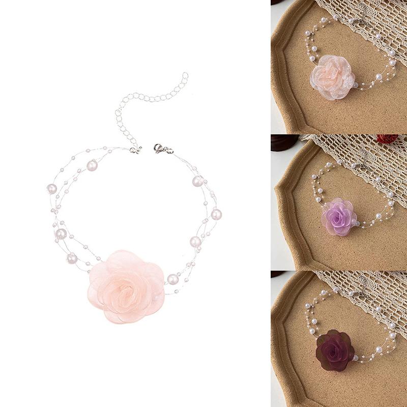 Романтическое жемчужное колье с камелией, летняя цепочка на ключицы с тканевыми цветами и жемчугом для женщин, ювелирные изделия для ужина
