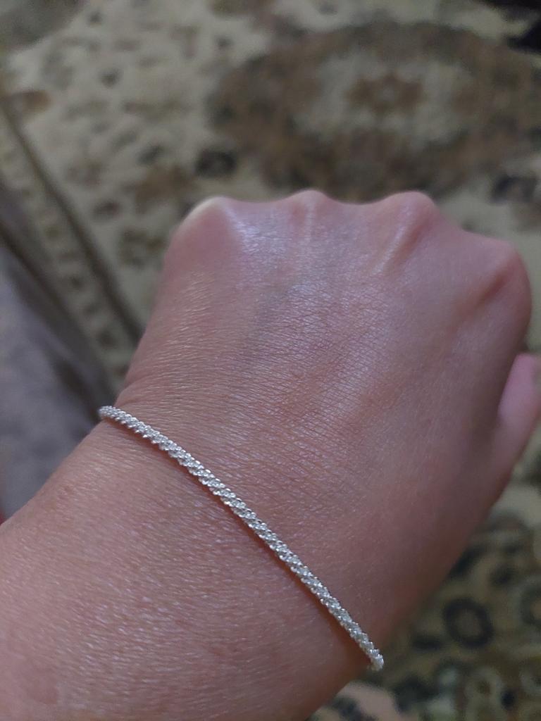 Получила браслетик серебристого цвета, без повреждений, по размеру на мою руку подошёл хорошо, классно смотрится, спасибо продавцу и джум за отправку 10 посылок в одной (это очень удобно)