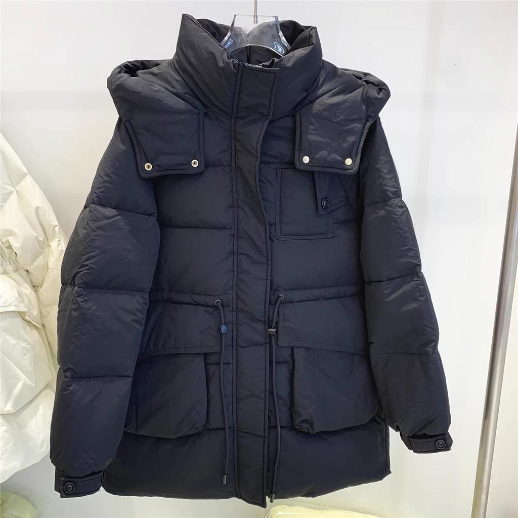 МОДА 2024 года, новая женская пуховая куртка средней и длинной длины, корейская версия, большой карман, капюшон, шнурок, талия, плотная женская зимняя одежда
