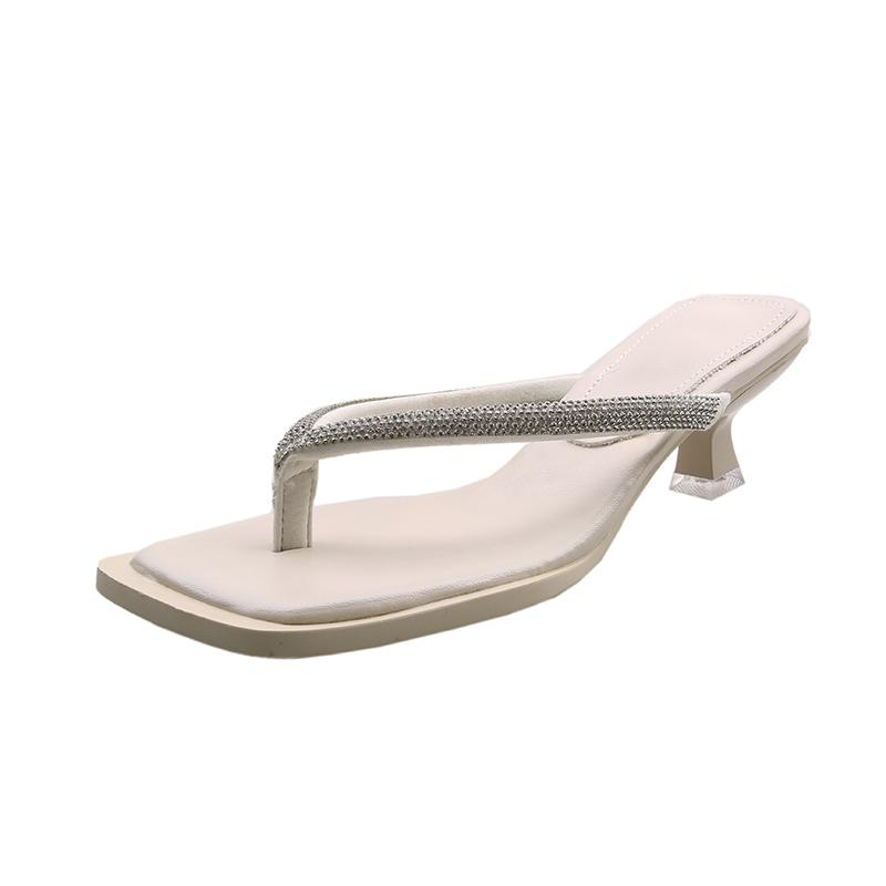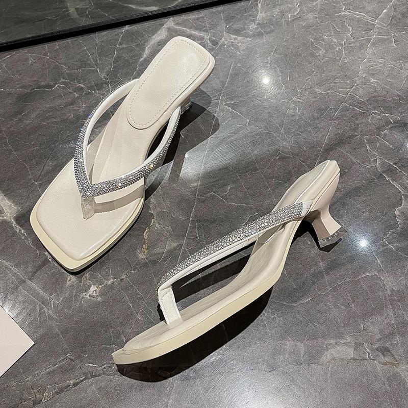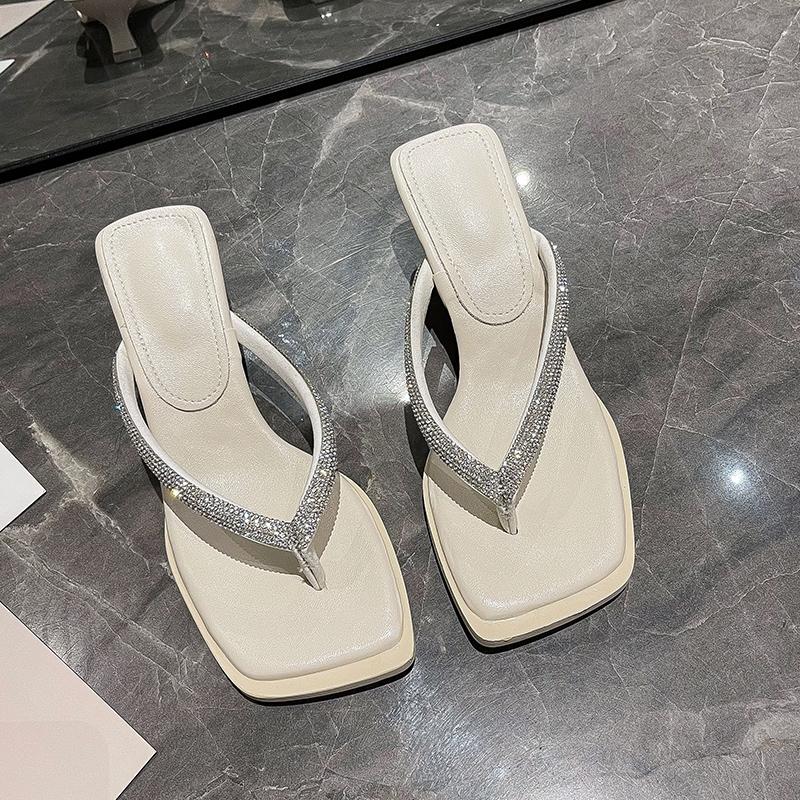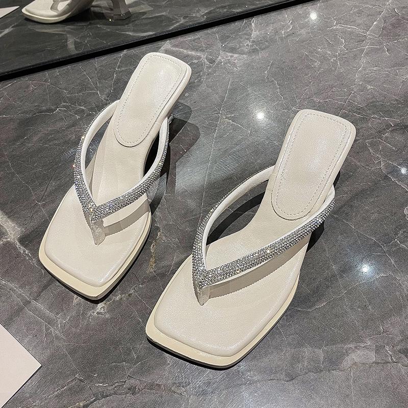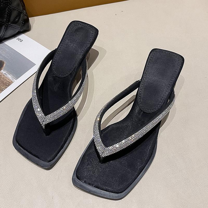 2024 блестящие шлепанцы со стразами женские блестящие тапочки на низком каблуке мюли модные летние босоножки с квадратным носком шлепанцы