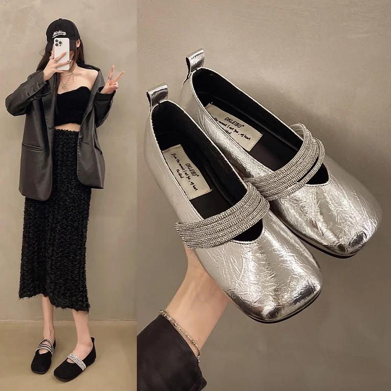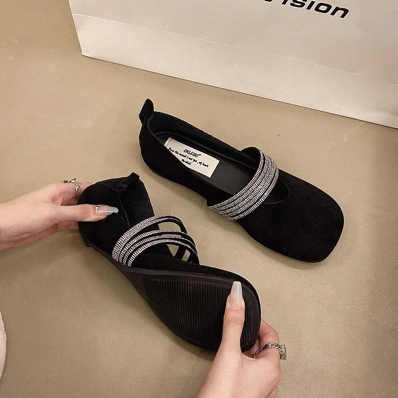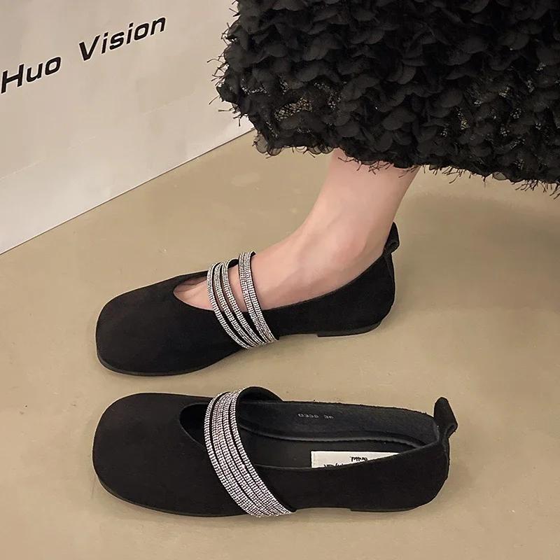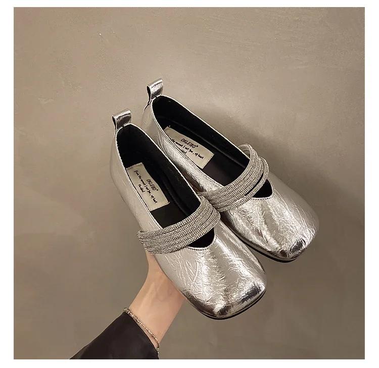 Туфли-лодочки с квадратной головкой и неглубоким носком для женщин, летняя новая модная линия 2024 года со стразами, женская обувь