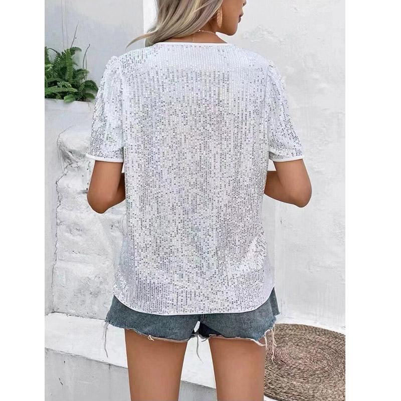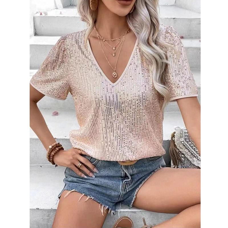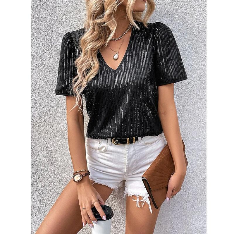 Топы с пайетками, женские топы с v-образным вырезом и короткими рукавами, свободные блестящие топы для женщин, нарядные топы для вечеринок