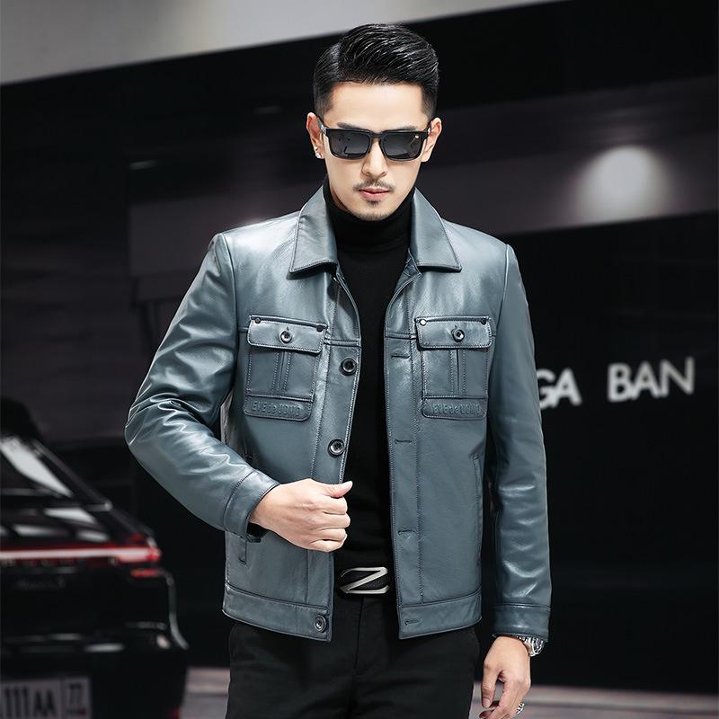 Весна и осень, новый верхний слой телячьей кожи, кожаная куртка мужская с лацканами, повседневная деловая куртка для мужчин