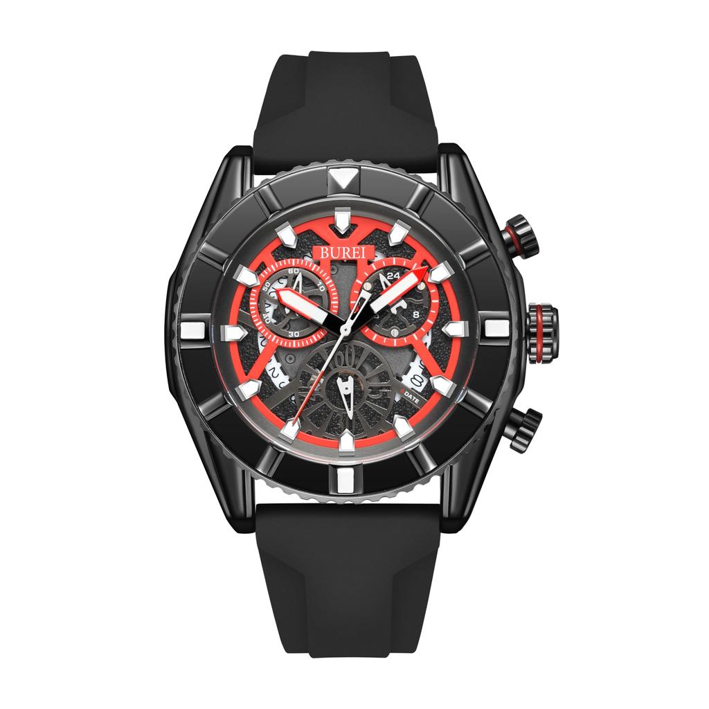[BUREI] Мужские часы с хронографом, кварцевые, мужские часы, аналоговые, водонепроницаемые, дата, черные, с уретановым ремешком, мужские часы в подарок — купить товар онлайн с бесплатной доставкой до всему миру!