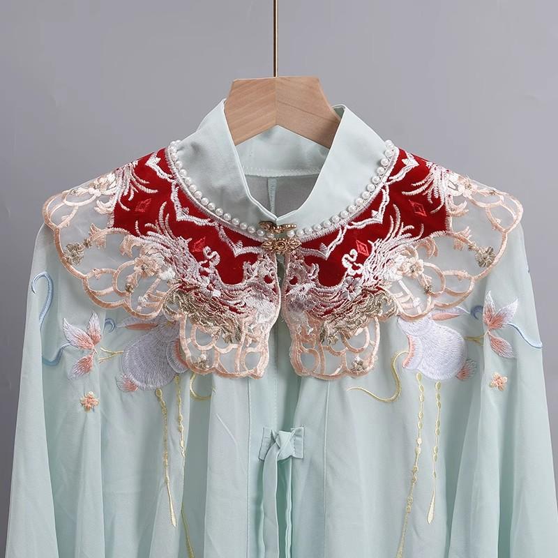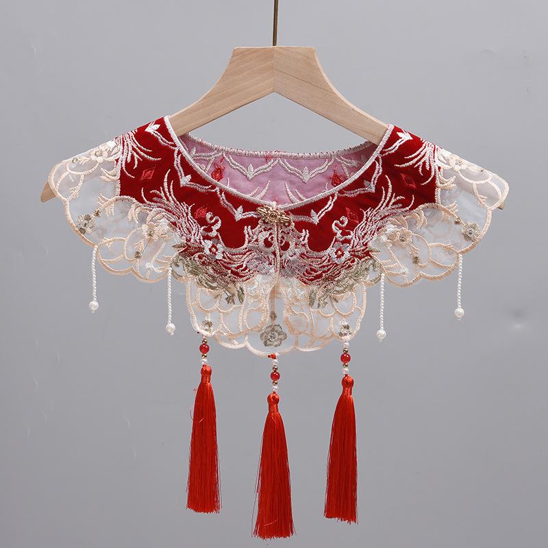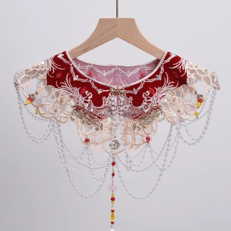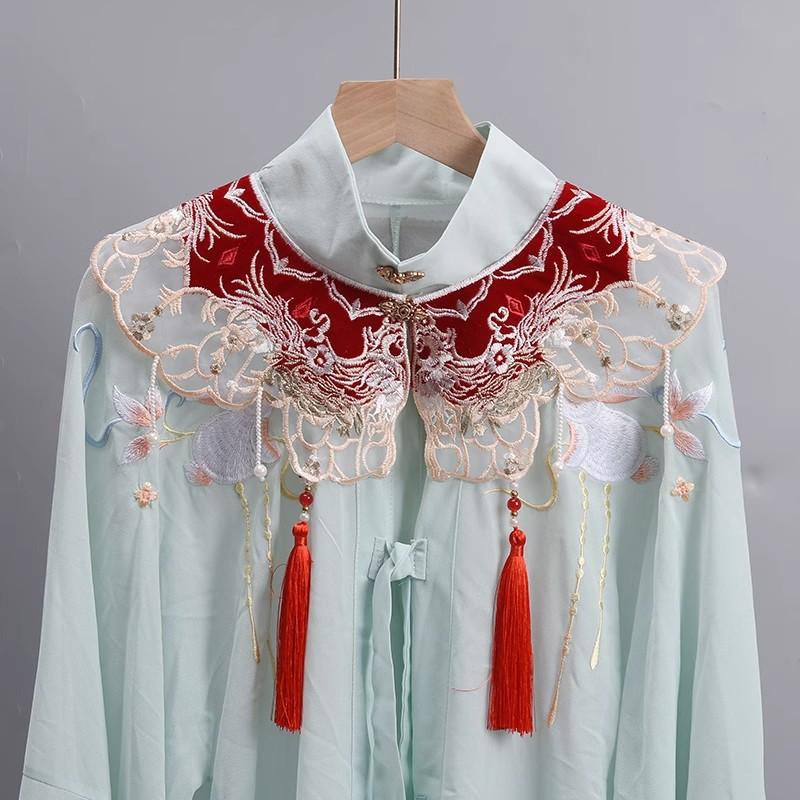 Платье для верховой езды с облачными плечами, вышитое бахромой, имитация воротника, ретро-шаль, национальный стиль, ханьфу, жемчужные аксессуары, накидка