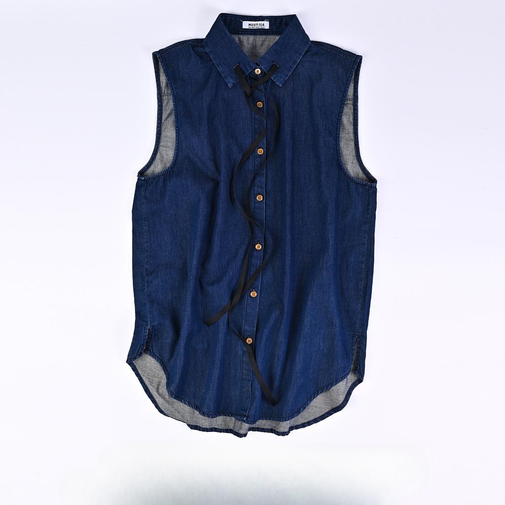 Оригинальный магазин шнуровка джинсовый жилет штабелированный жилет свободный жилет без рукавов жилет женский поддельный воротник