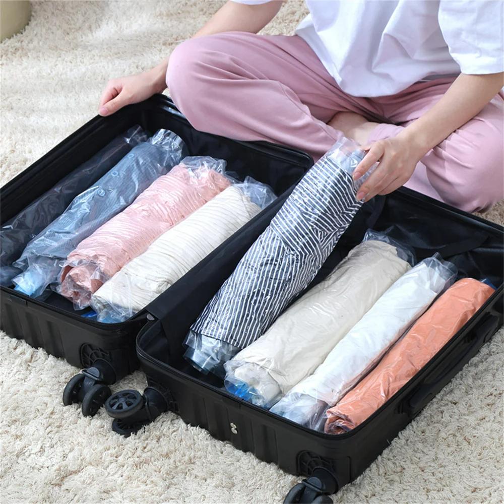 Дорожный багаж, скрученный вручную вакуумный компрессионный мешок, прозрачный мешок для хранения одежды, экономящий место в доме, упаковочный мешок