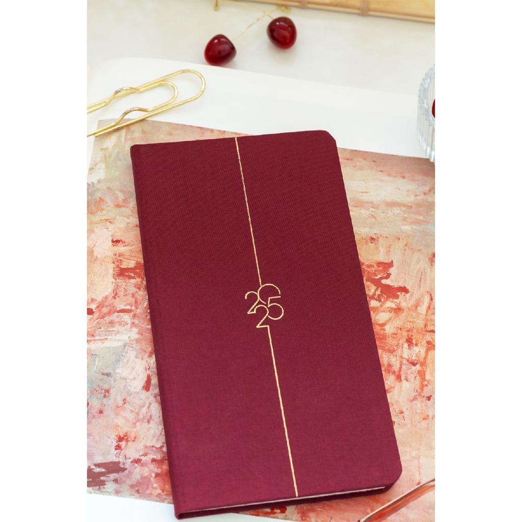 Еженедельный льняной карман на 2025 год, 12 месяцев, бордовый красный